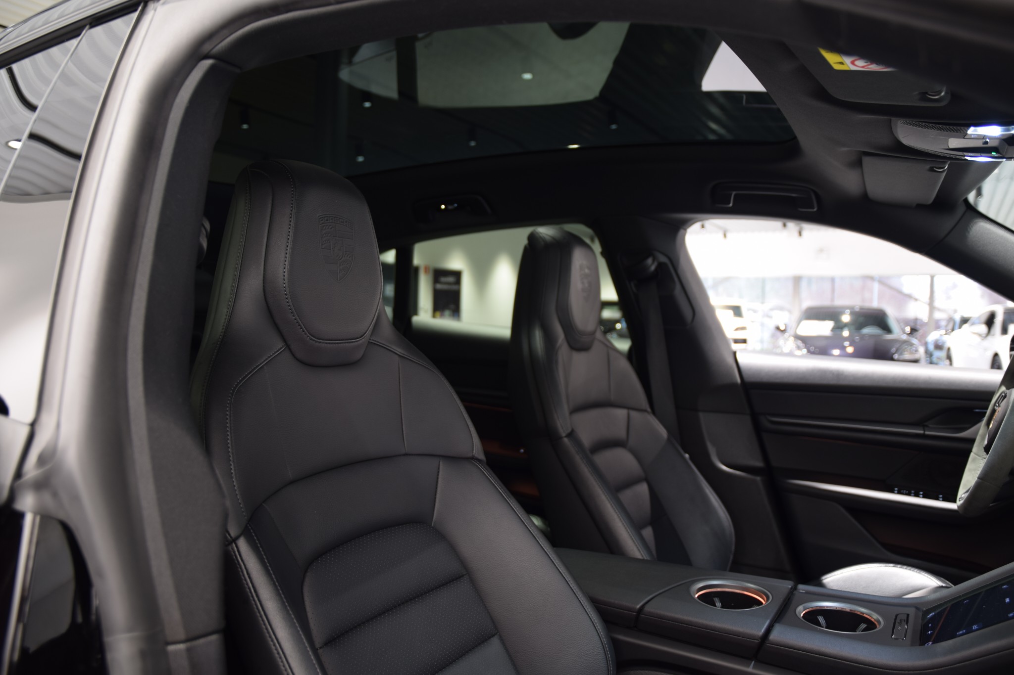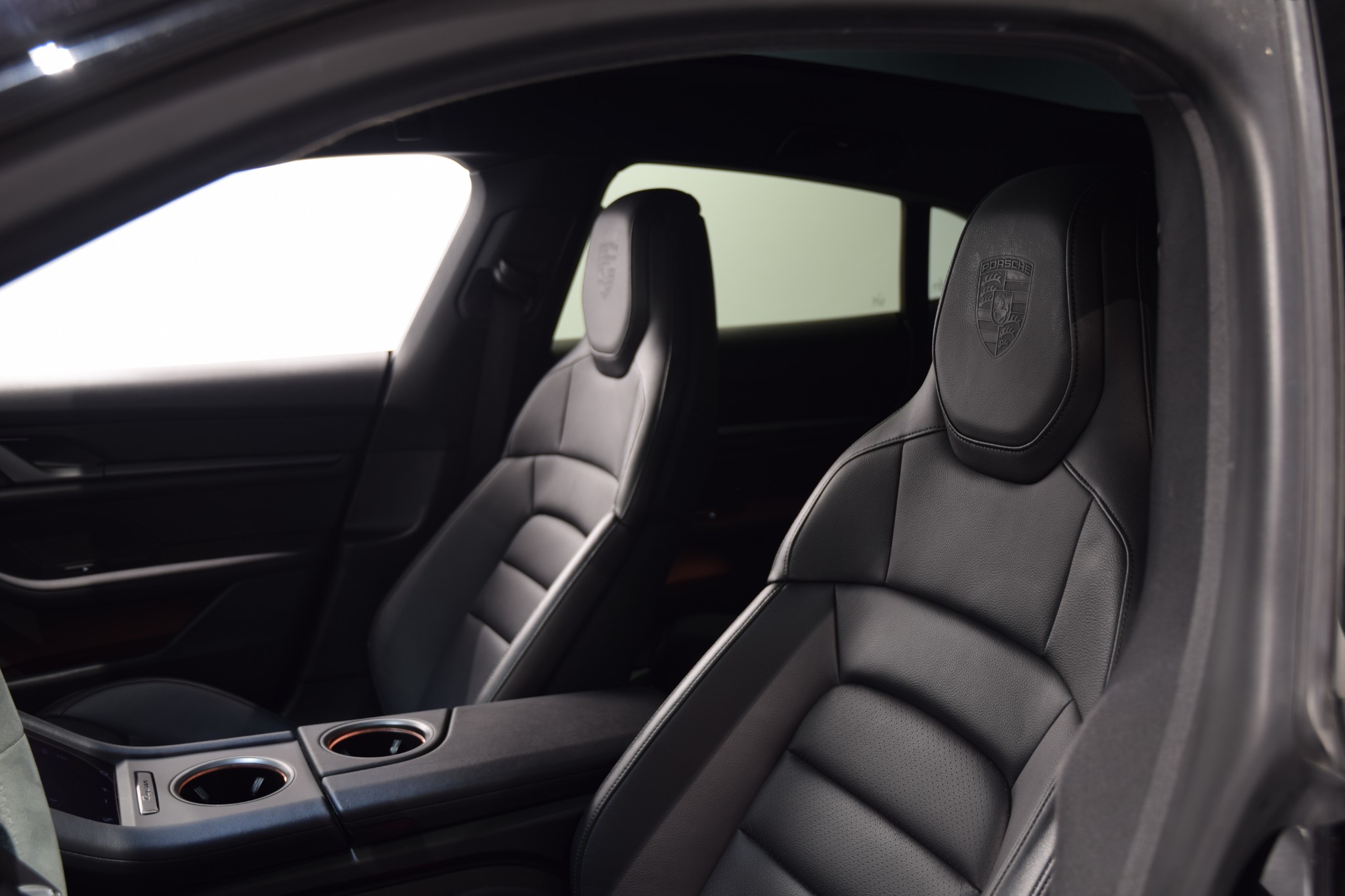 - Porschevapen präglade på nackstöd