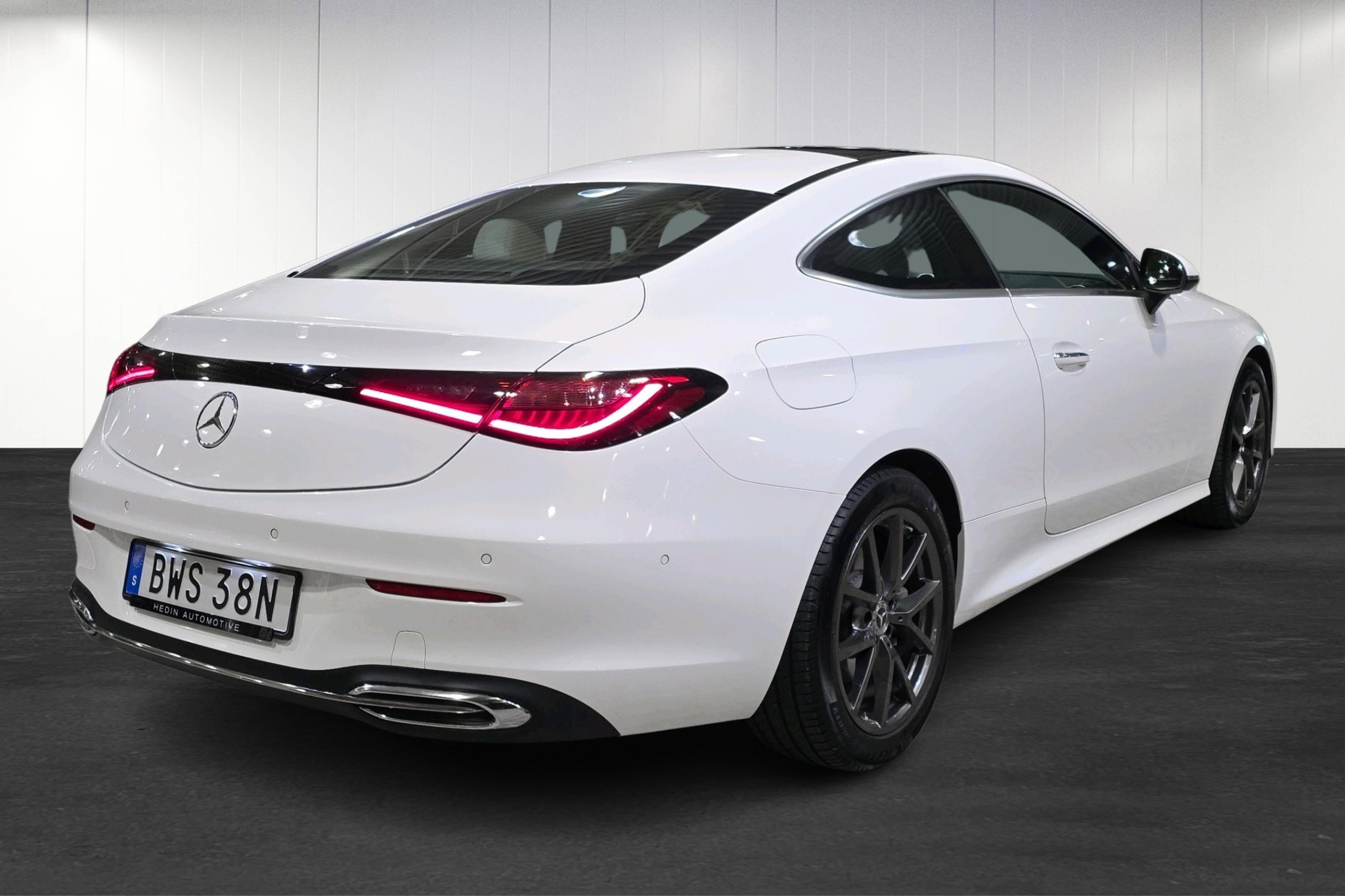 Mercedes-Benz CLE 200 Coupé Avantgarde laddhybrid, 2024, i elegant vit med endast ca 1 600 mil på mätaren – i princip nyskick.