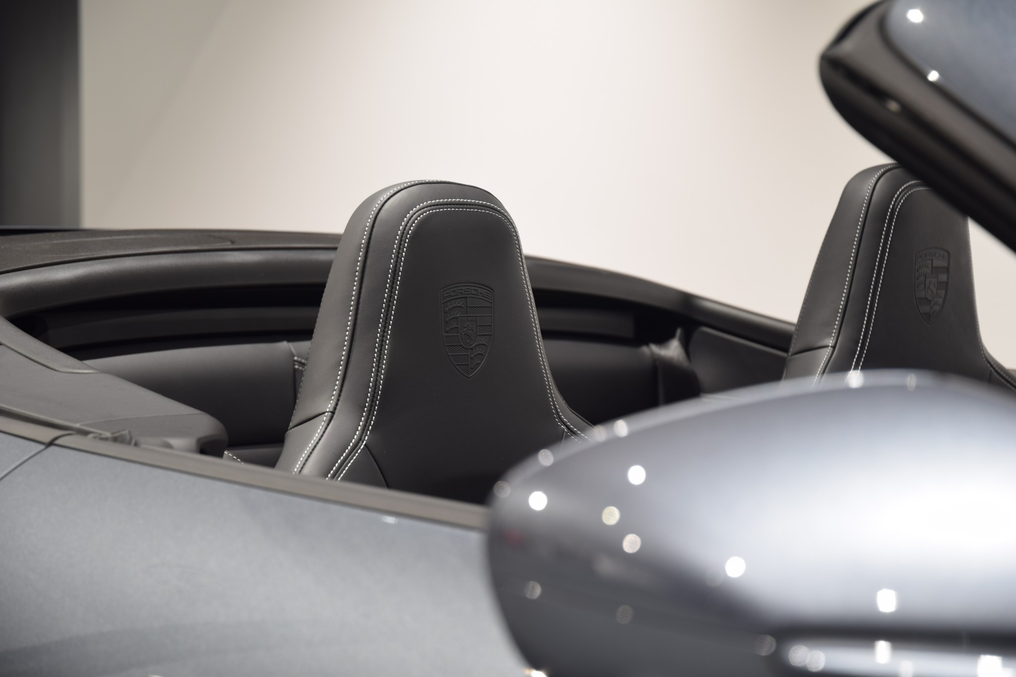 - Porsche-vapen präglat på nackstöd