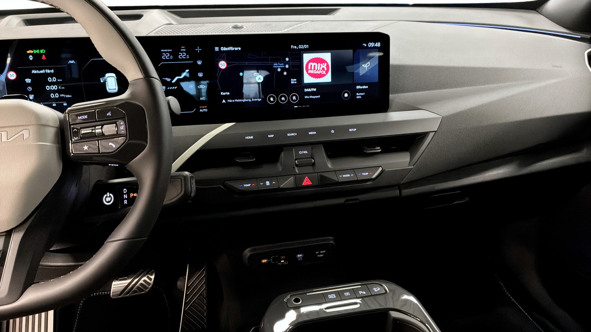 Den stora pekskärmen rymmer navigationssystem, Apple CarPlay/Android Auto och ett premiumljudsystem från Harman Kardon. Heads-up display hjälper dig hålla blicken på vägen, medan 360°-kamera, backkamera, parkeringssensorer fram/bak och elbaklucka gör vardagen enkel.