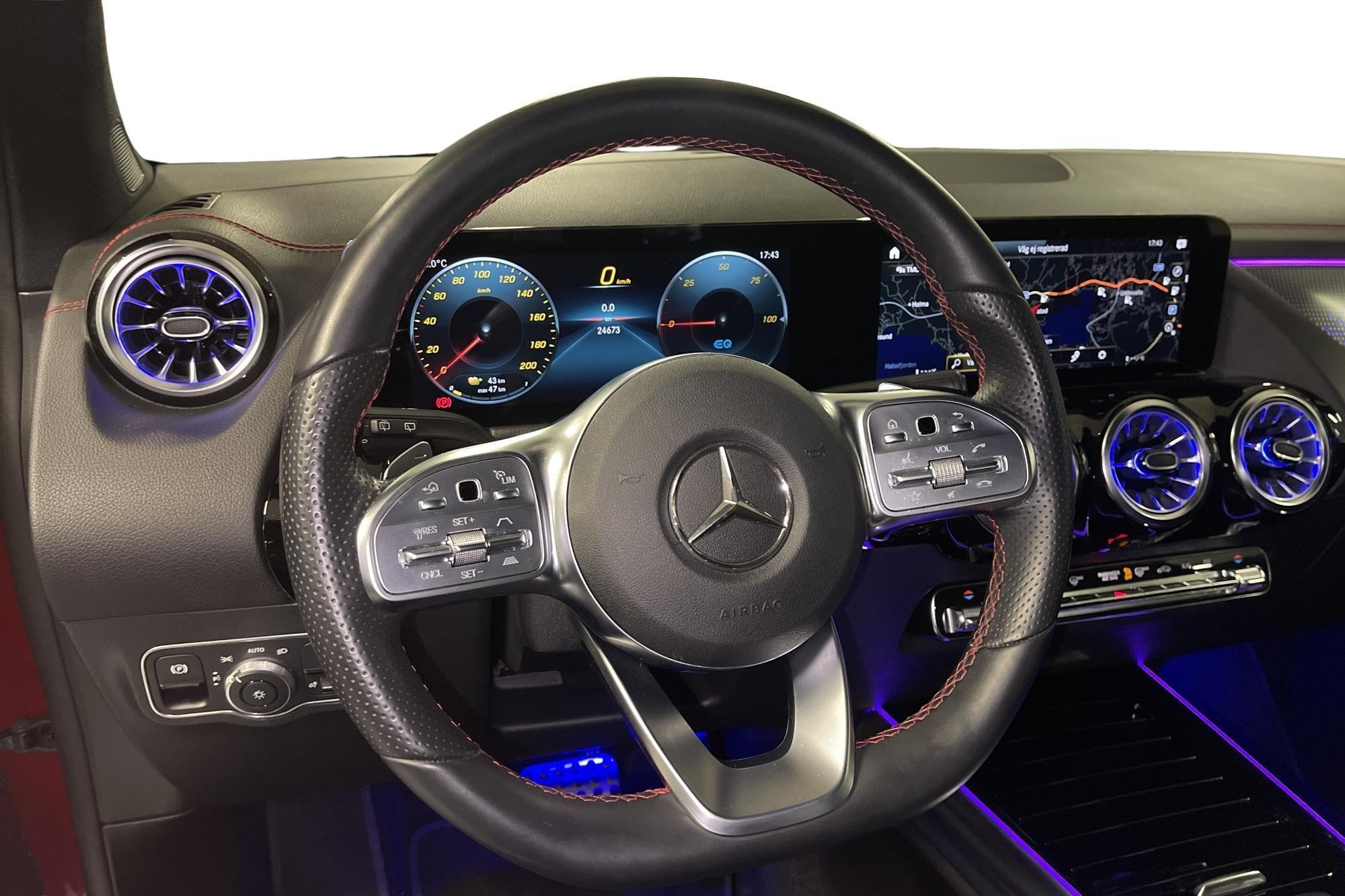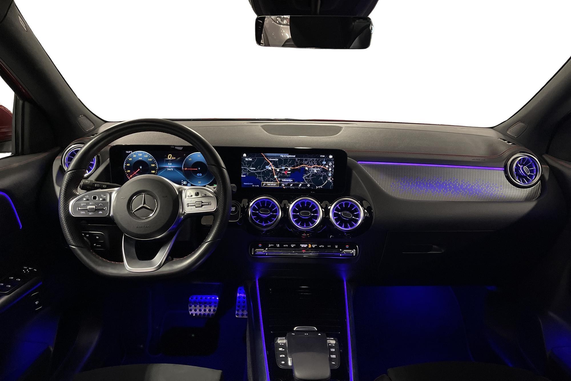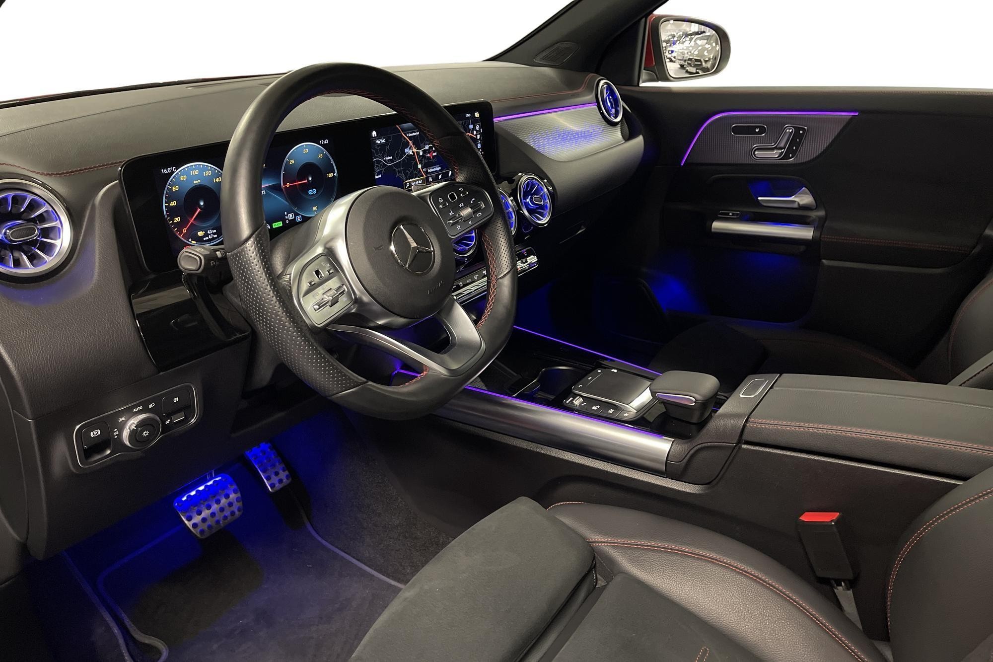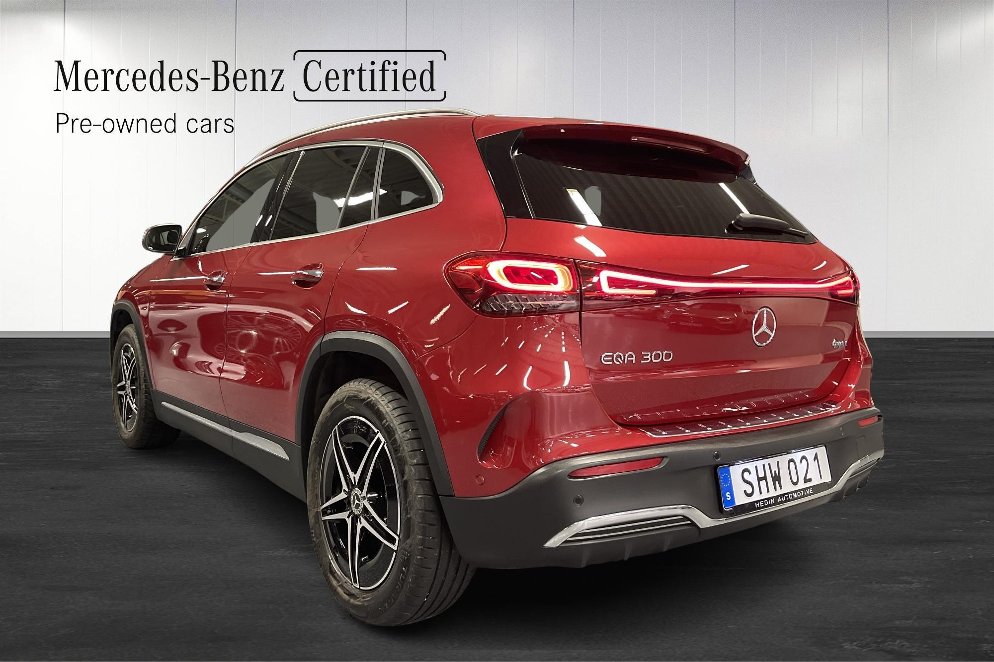Mercedes-Benz EQA 300 4MATIC AMG Line, 2023, i exklusiva nyansen Manufaktur Patagonienröd Bright – en helt elektrisk, kompakt premium-SUV med fyrhjulsdrift och riktigt låg mätarställning på ca 300 mil.