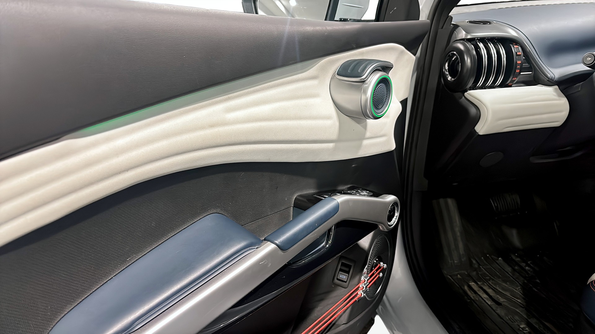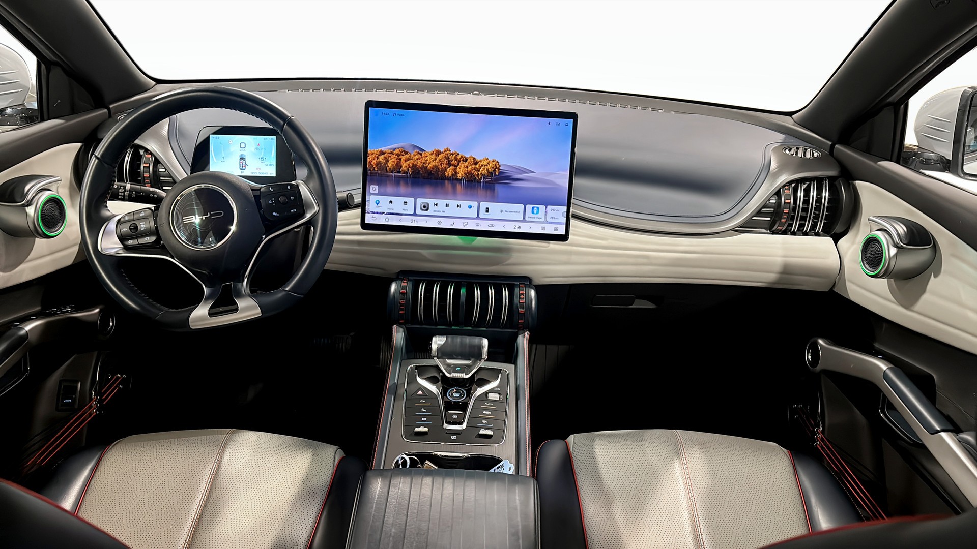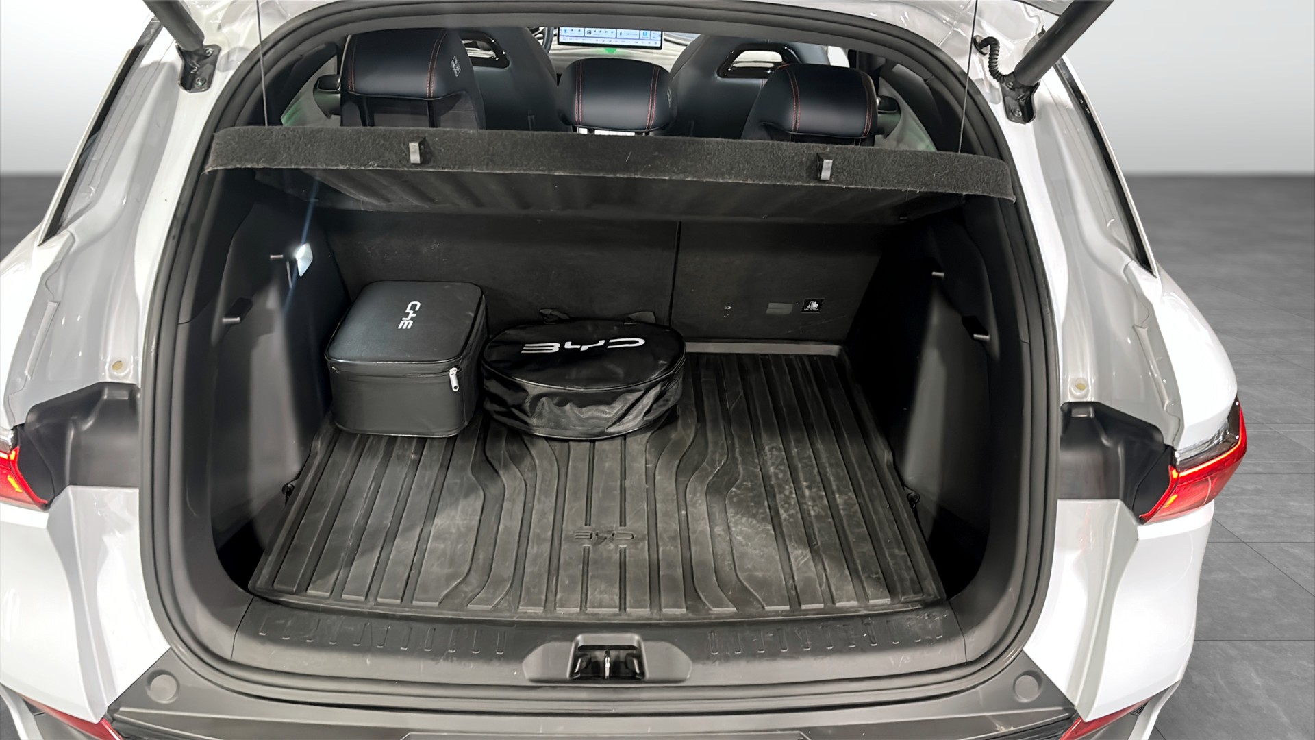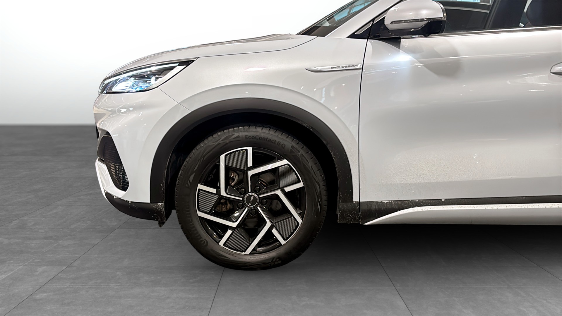 BYD ATTO 3 Design 2022 – modern, rymlig el-SUV i härlig färgen Skiing White med stilfull interiör i Blue Grey.