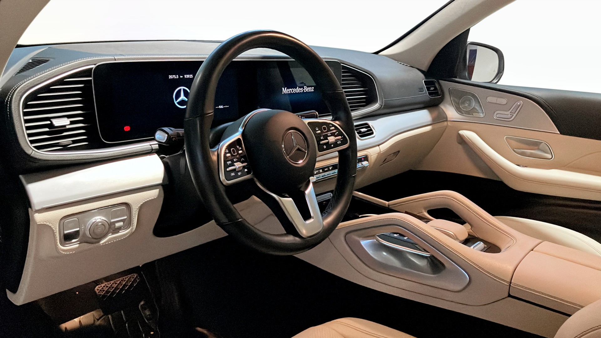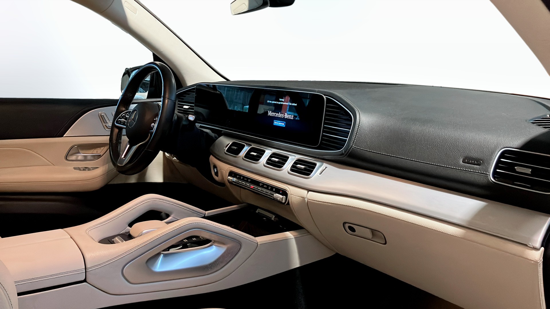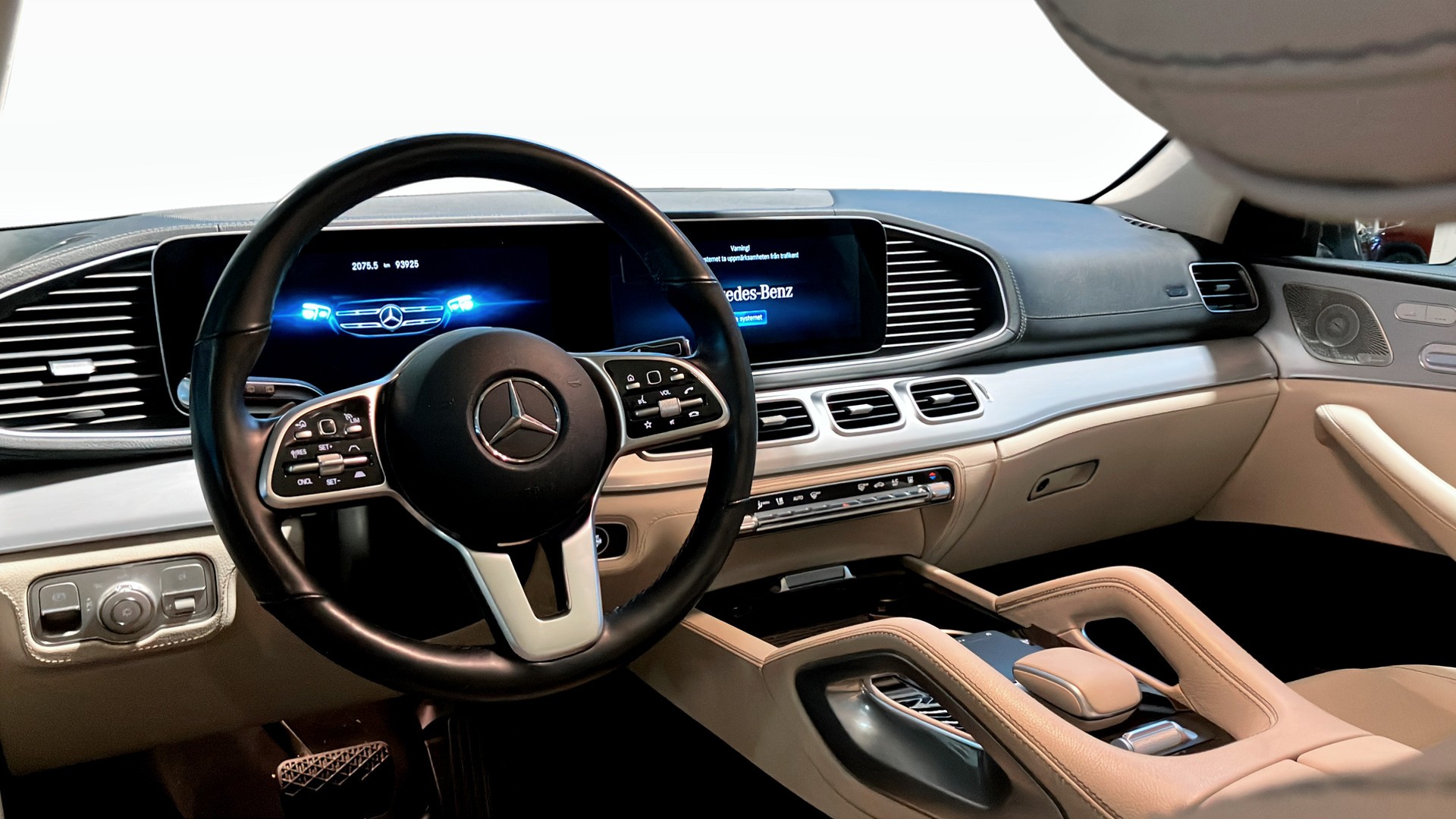 Här får du AMG Line exteriör med sportiga 22" AMG-fälgar, sportbromsar, fotsteg och mörktonade rutor som ger ett kraftfullt och lyxigt intryck. Invändigt möts du av panoramatak, multifunktionssportratt i nappa, elstolar med svankstöd samt ventilering och värme fram, ambient panelbelysning och Burmester 4D surround-ljudsystem för en förstklassig körupplevelse.