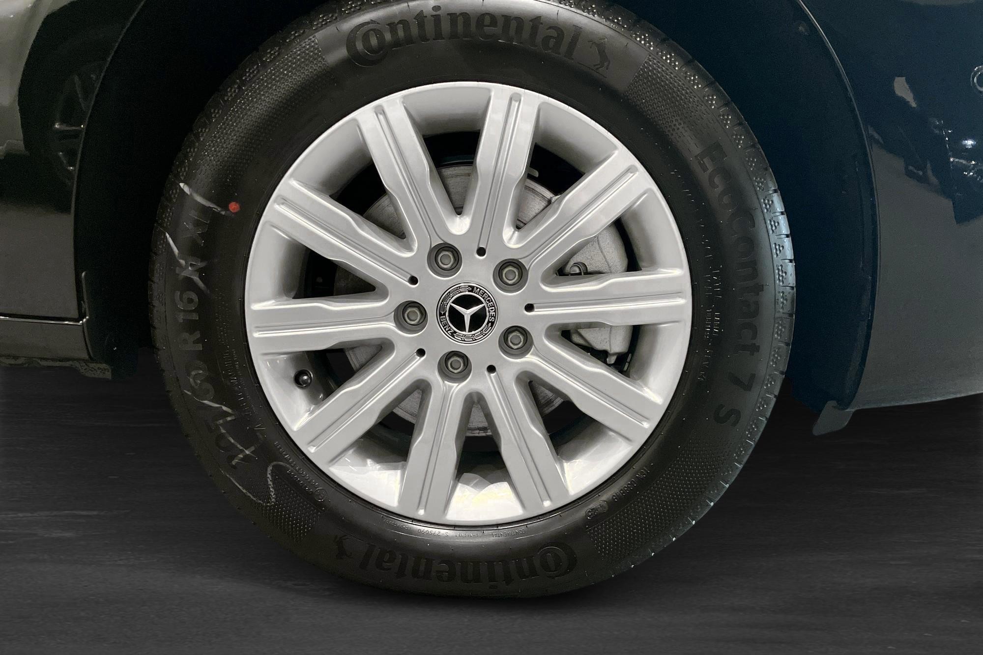 Säkerheten är i topp med bland annat aktiv bromsassistent, aktiv kurshållningsassistent, dödvinkelassistent, trafikskyltsassistent, helljusassistent, backkamera, parkeringsassistent, ESP, ABS/ASR, flera krockkuddar inklusive thorax- sido- och fönsterkrockkuddar, säkerhetsbältesvarnare samt Mercedes-Benz nöduppringning. Förberedd för alkolås och utrustad med I-size barnstolsinfästning.
