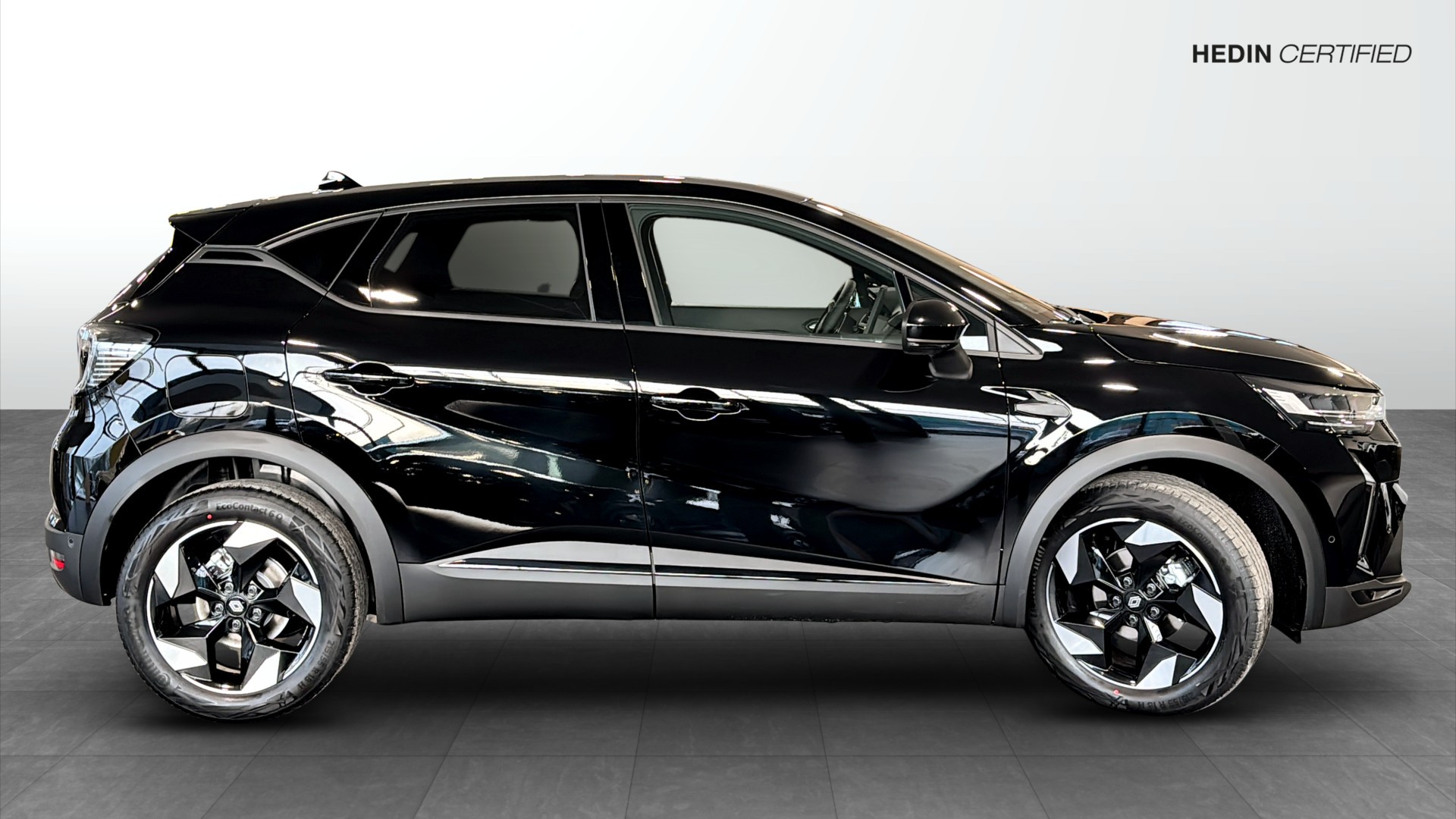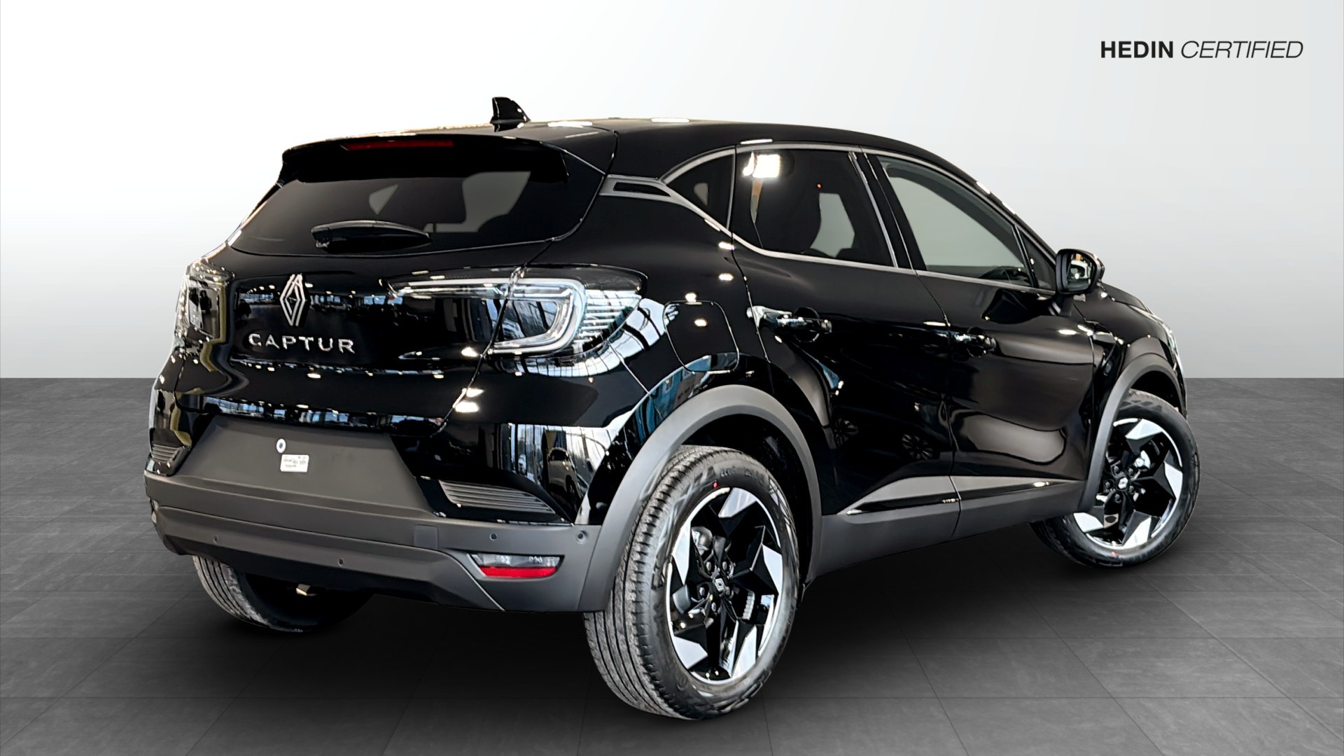 Renault Captur Techno Mildhybrid 140 EDC, årsmodell 2025, i elegant Svart Étoile – en modern och smidig crossover med riktigt låg förbrukning och automatlåda. Nästan ny bil med endast ca 1 mil på mätaren.