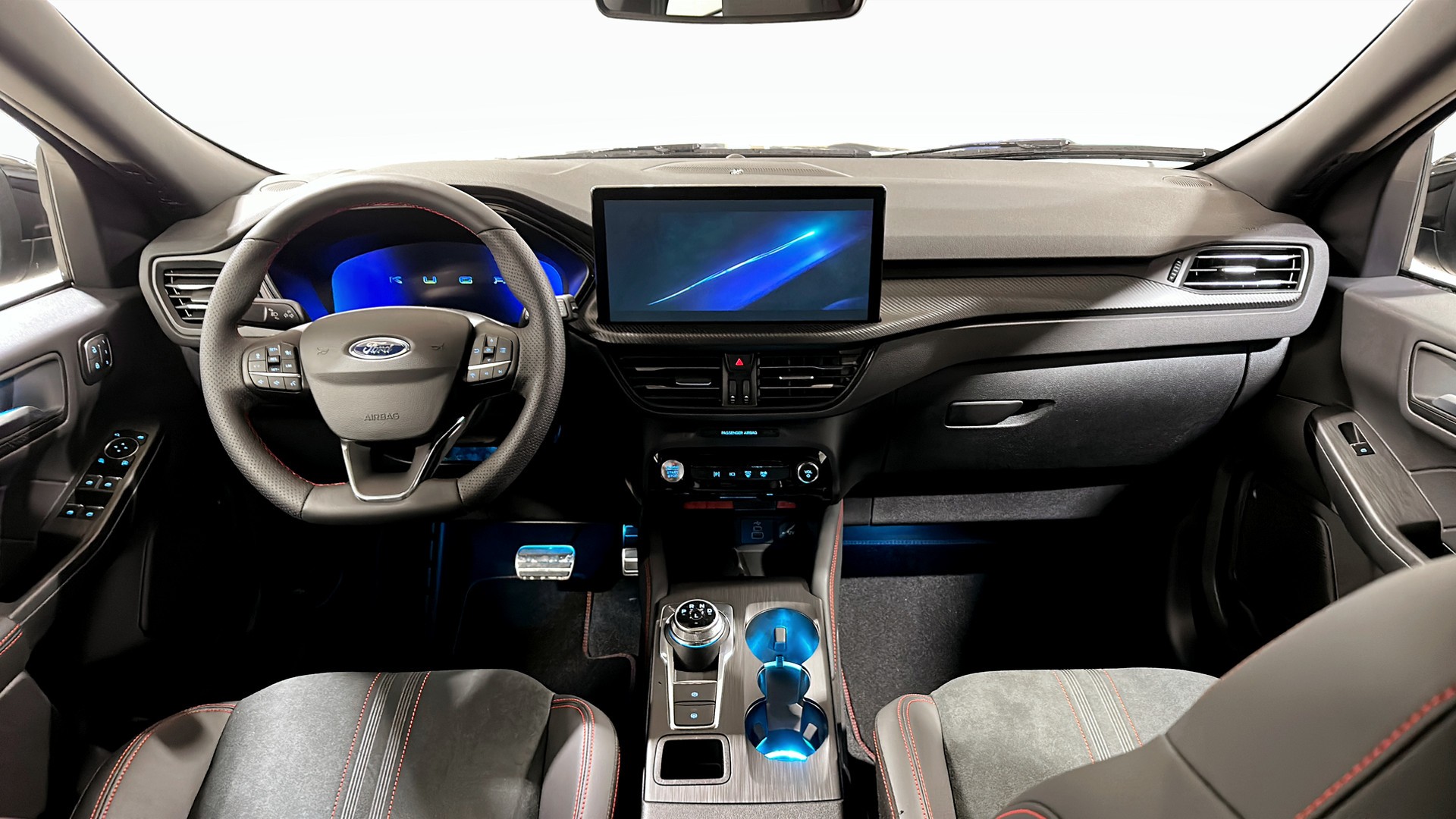 Utrustad med elinfällbar dragkrok, vinterpaket (bl a uppvärmbar vindruta och uppvärmbara yttre sittplatser bak), tvåzons klimatanläggning och FordPass Connect (5G-modem).