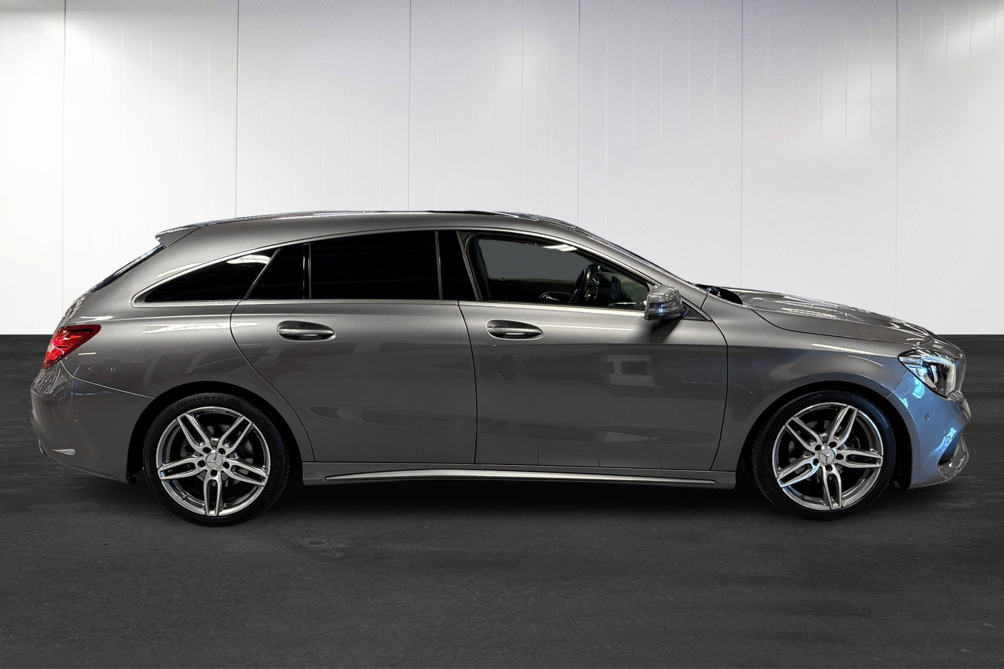 Mercedes-Benz CLA 180 Shooting Brake 2019 i elegant bergsgrå metallic – en sportig kombi med låg gångtid på endast ca 7046 mil. Perfekt för dig som vill kombinera premiumkänsla, design och praktisk vardagsbil.