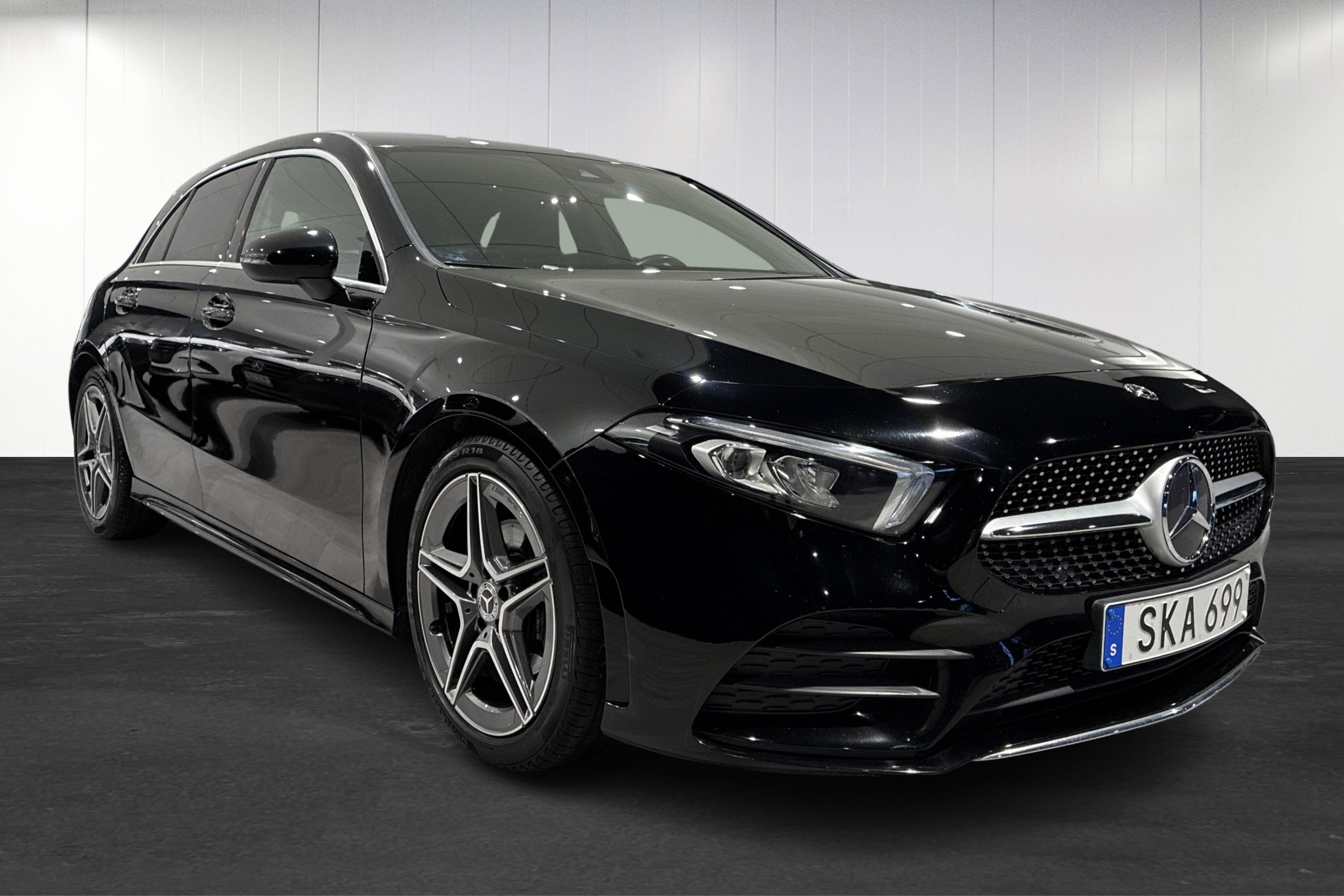 Mercedes-Benz A-Klass A 180 Kombi 2018 i elegant nattsvart – en sportigt utrustad och bränslesnål premiumbil med låg körsträcka på endast ca 7452 mil.