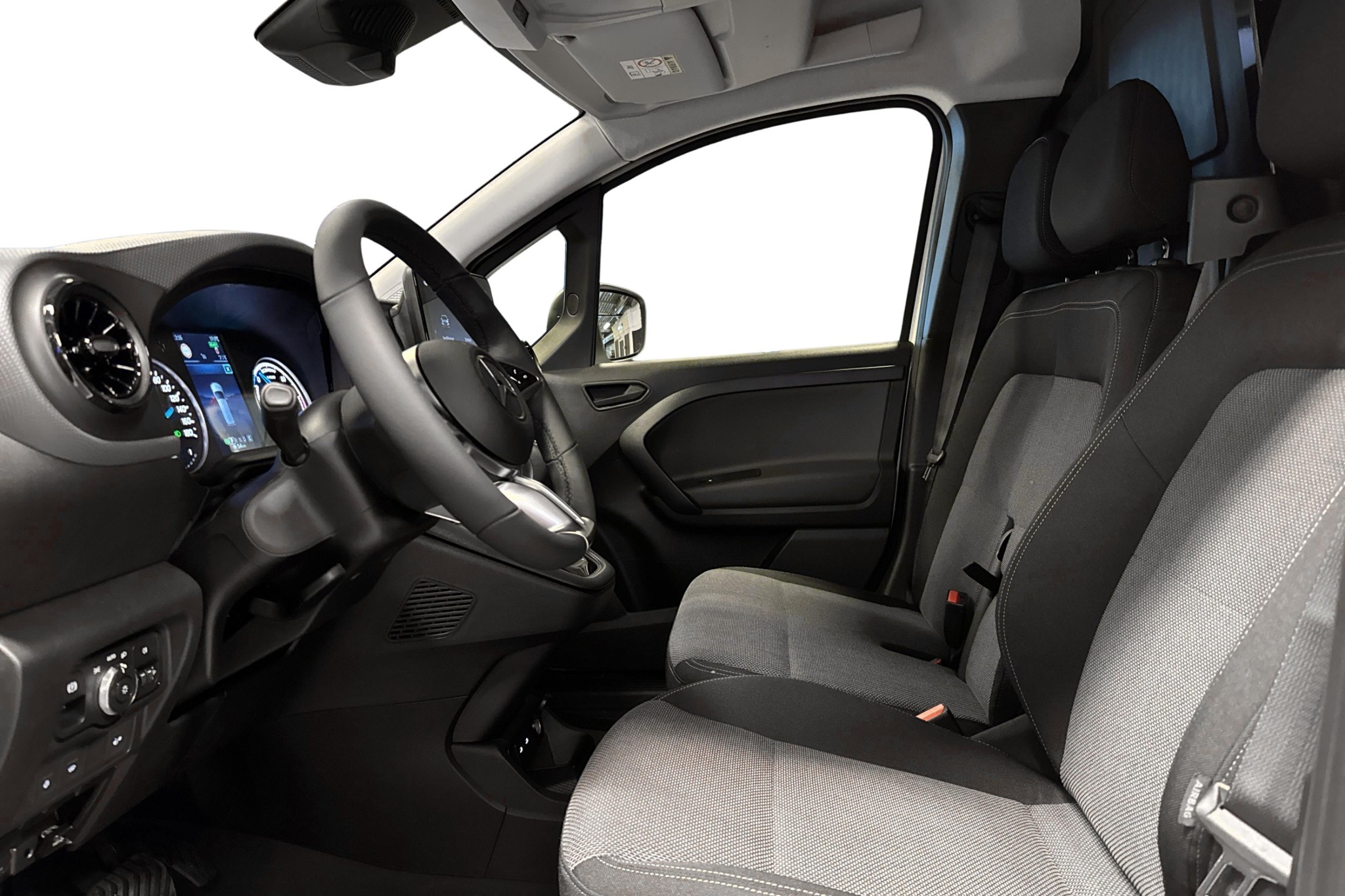 Komforten håller Mercedes-klass med dubbelt passagerarsäte (3 sittplatser), eluppvärmd förarstol, säteskomfortpaket, läderratt och uppvärmd multifunktionsratt. Automatisk klimatanläggning, förklimatisering och elektrisk tillsatsvärmare ger behaglig temperatur året runt, och vinterpaket med uppvärmd vindruta underlättar kalla morgnar.
