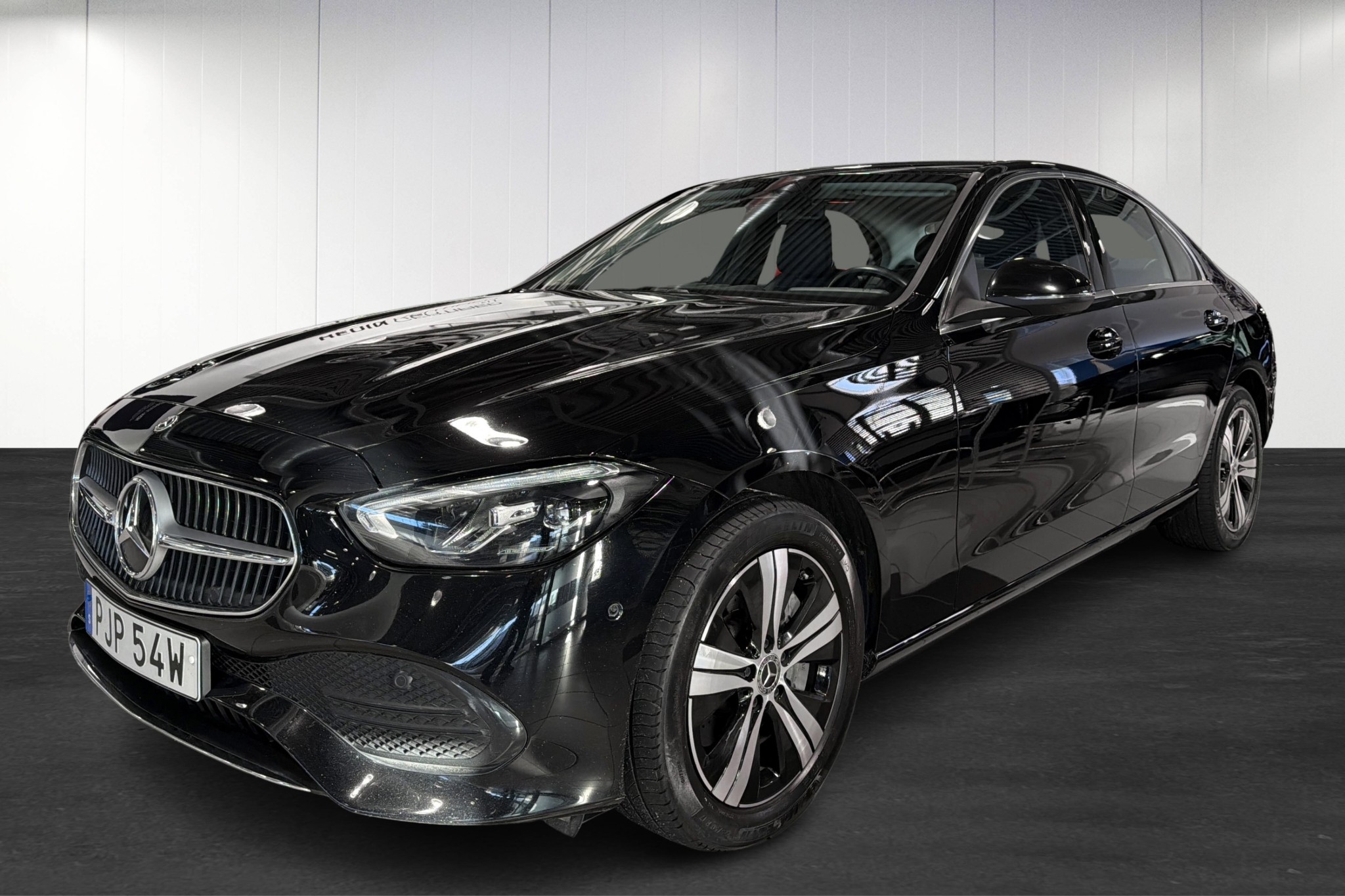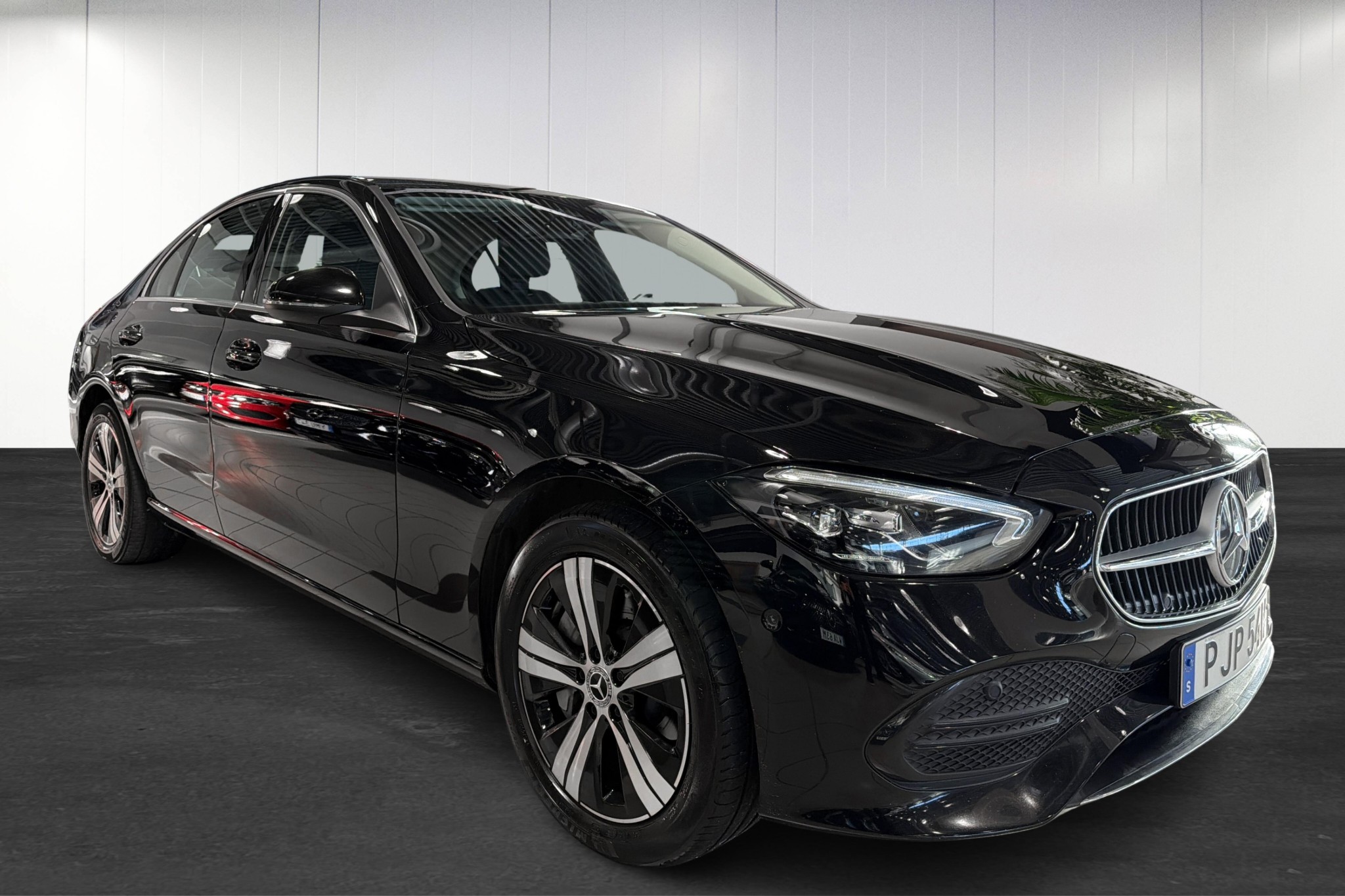 Mercedes-Benz C 300 e Sedan Plug-In Hybrid, 2023, i elegant svart solid lack. En modern och bränslesnål premiumsedan med upp till ca 11–12 mils räckvidd på el enligt WLTP – perfekt för vardagens pendling nästan helt på el, med bensinmotorn som trygg räckviddsförlängare.