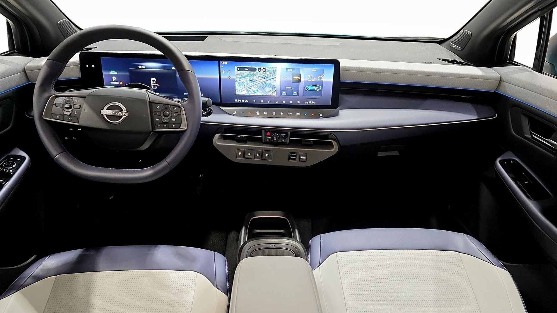 Denna Leaf är lanseringsversionen Engage med modern teknik som 13" pekskärm med DAB-radio, trådlös Apple CarPlay och Android Auto, samt NissanConnect med appstyrning av värmare m.m. Föraren möts av ett 12,3" digitalt instrumentkluster och två klimatzoner som ger hög komfort året runt, förstärkt av effektivt värmepumpsystem och batterivärmningssystem för bättre vinterprestanda.