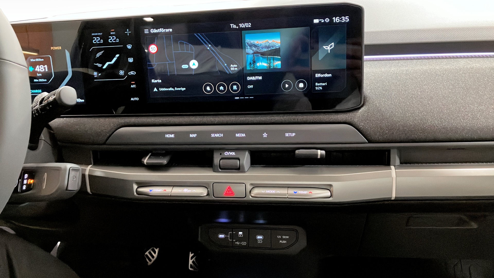 Bilen har en räckvidd upp till 56 mil enligt WLTP. AC laddning 10.5 kW. DC-Laddning 128kW (tar ca 30 min från 10-80%) Givetvis har bilen värmepump, vätskekylt batteri och V2L. Förberedd för V2G & V2H.