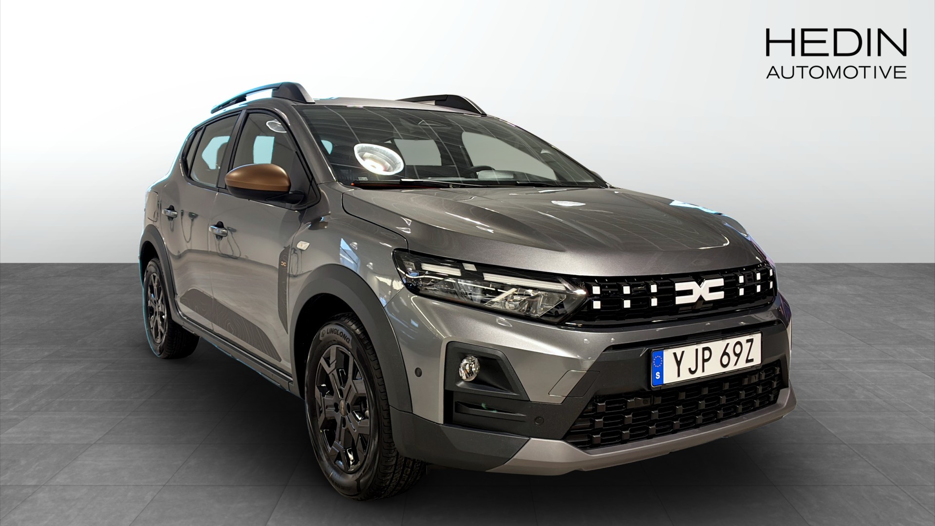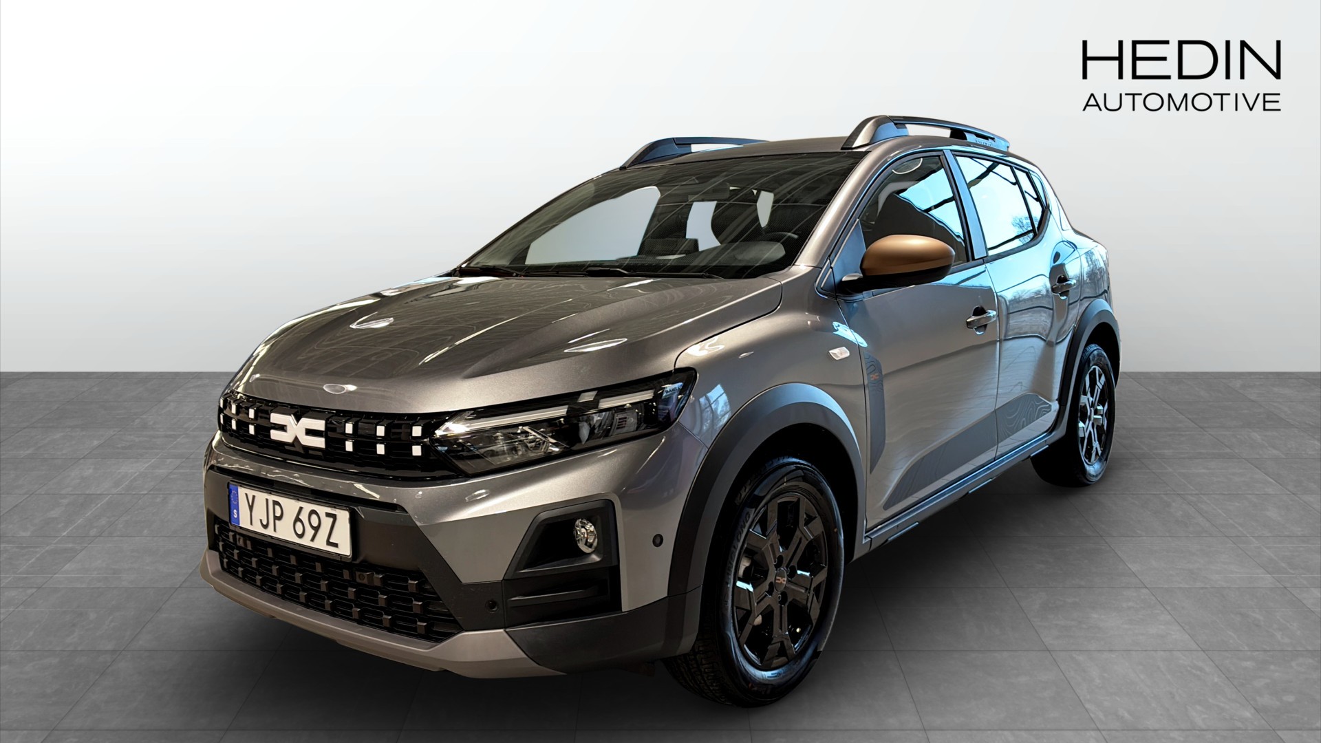 Dacia Sandero Stepway Extreme TCe 110, 2025, i färgen Grå Schiste – en smart och rymlig crossover för dig som vill ha lite extra markfrigång och en tuffare look utan att kompromissa på ekonomi.