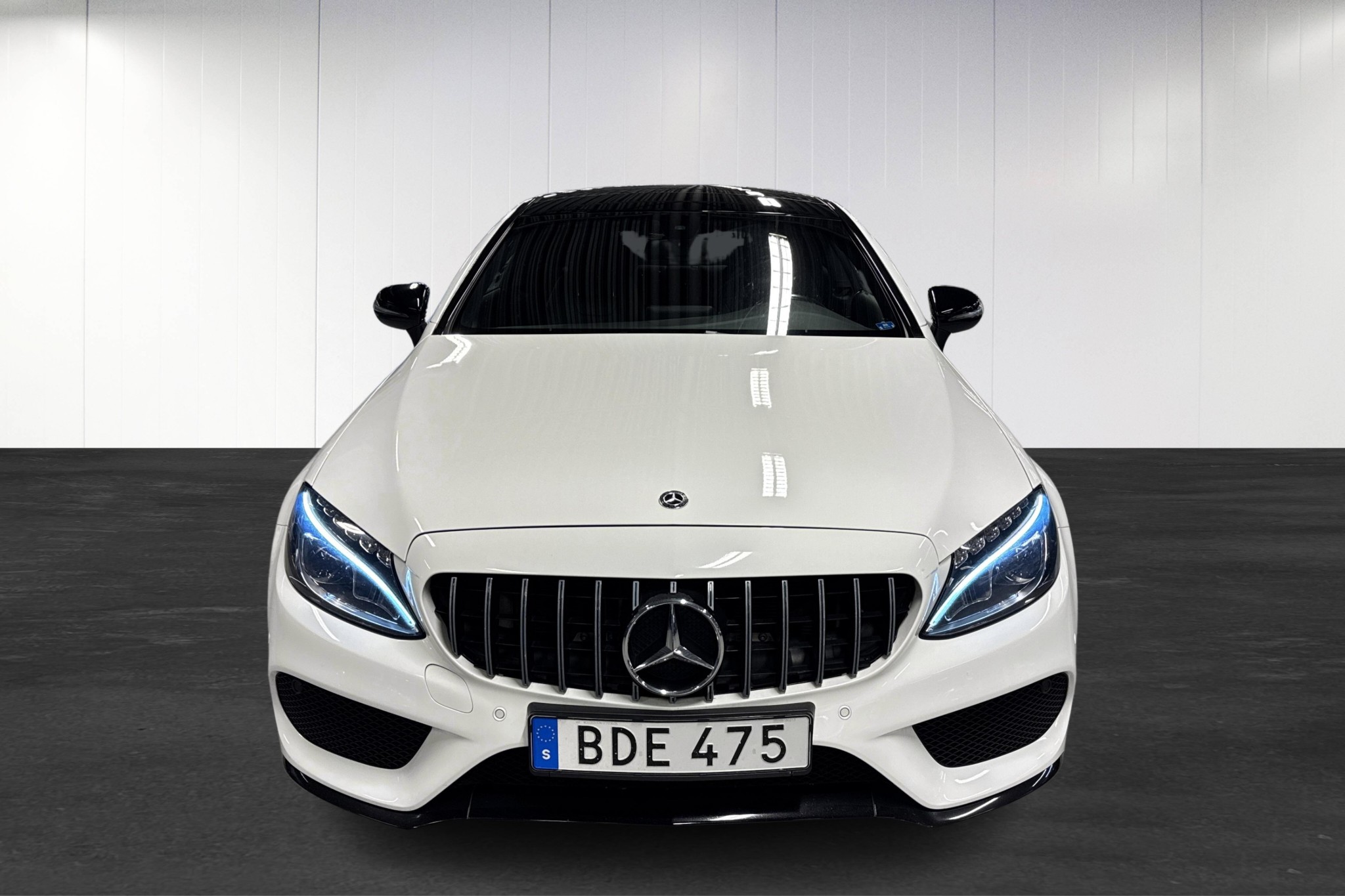 Den här bilen är utrustad med AMG Line exteriör/interiör, AMG sportchassi, 19" fälgar, Night Package, mörktonade rutor bak, panoramataklucka och svart innertak – vilket ger ett riktigt skarpt och exklusivt utseende.