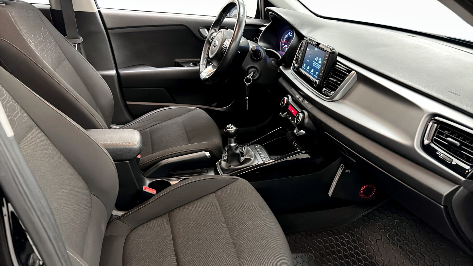 Säkerhetsmässigt är Rio välutrustad med bland annat antisladdsystem (ESC), körfils-/vägfilsassistans (LKA), LED-strålkastare, parkeringssensorer bak samt uppvärmd bakruta. Modellen har dessutom hög säkerhetsklassning (Top Safety Pick+ och 5 stjärnor i Euro NCAP).