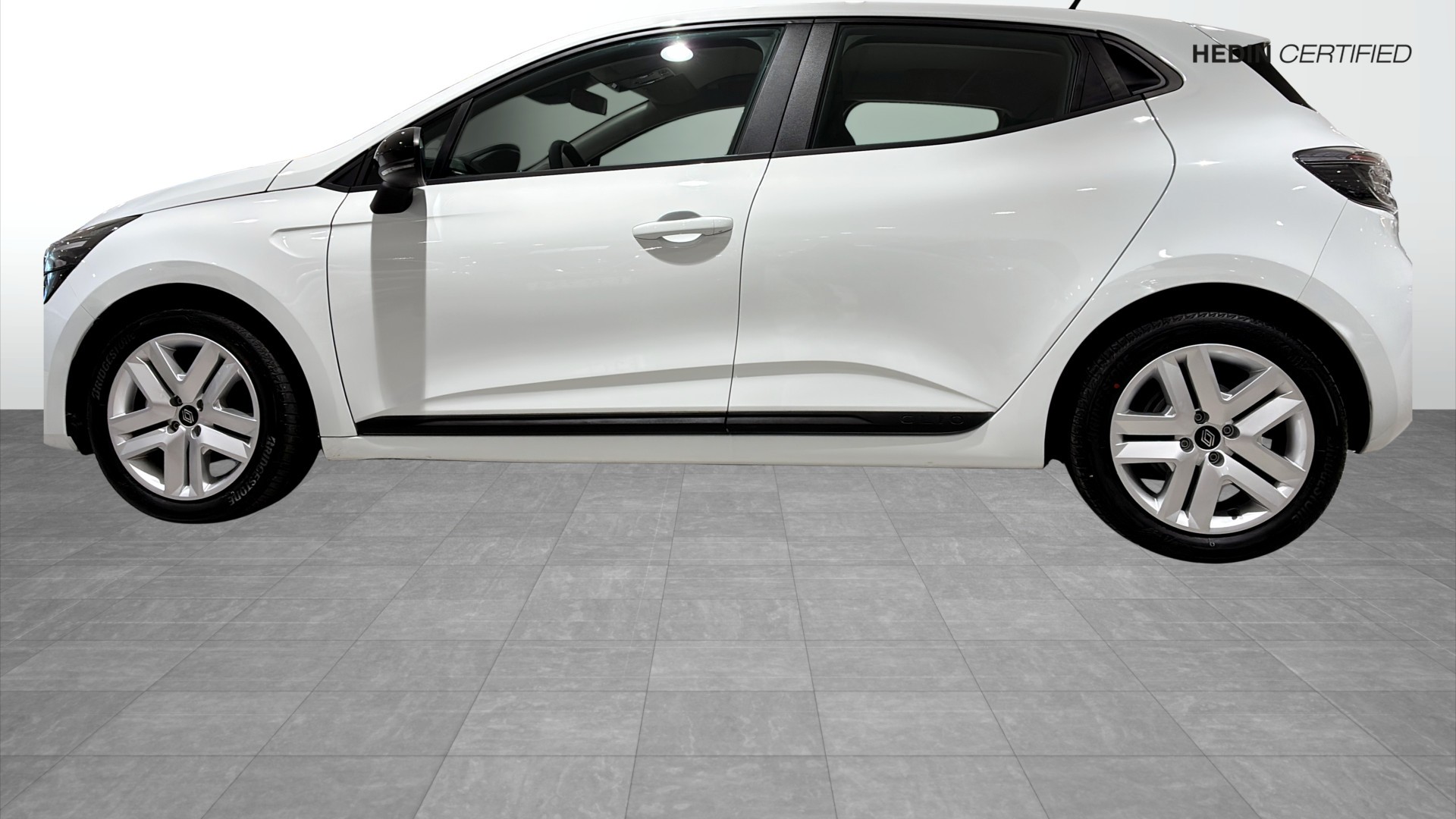 Renault Clio Evolution HEV 145hk, årsmodell 2024, i elegant Glaciär Vit – en modern och bränslesnål hybrid för dig som vill kombinera låg förbrukning med hög komfort i vardagen.