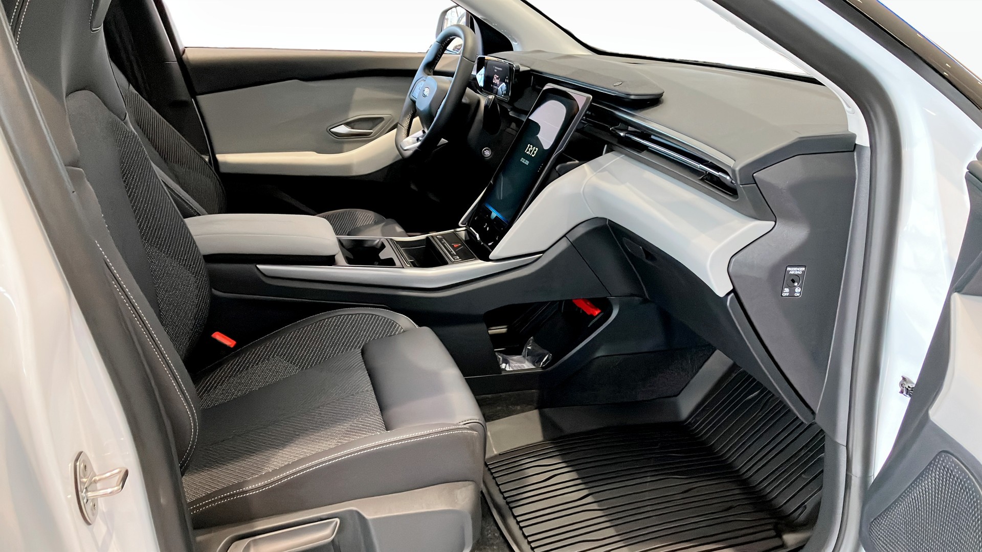 Bilen är utrustad med snygga 21" silver/svarta aluminiumfälgar som ger ett sportigt och exklusivt intryck. Elinfällbar dragkrok gör det smidigt att haka på släp eller cykelställ när det behövs, och fälls undan när den inte används. Värmepumpen hjälper till att behålla bra räckvidd även under kalla svenska vintrar.