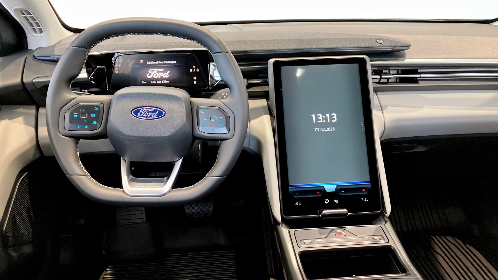 Ford Explorer Long Range RWD 286hk, årsmodell 2025, i elegant Frozen White – en helt ny. Här får du en tyst och kraftfull eldrivlina på 286 hk, automat, framhjulsdrift och lång räckvidd upp till ca 60 mil med låg förbrukning på 15,1 kWh/100 km.