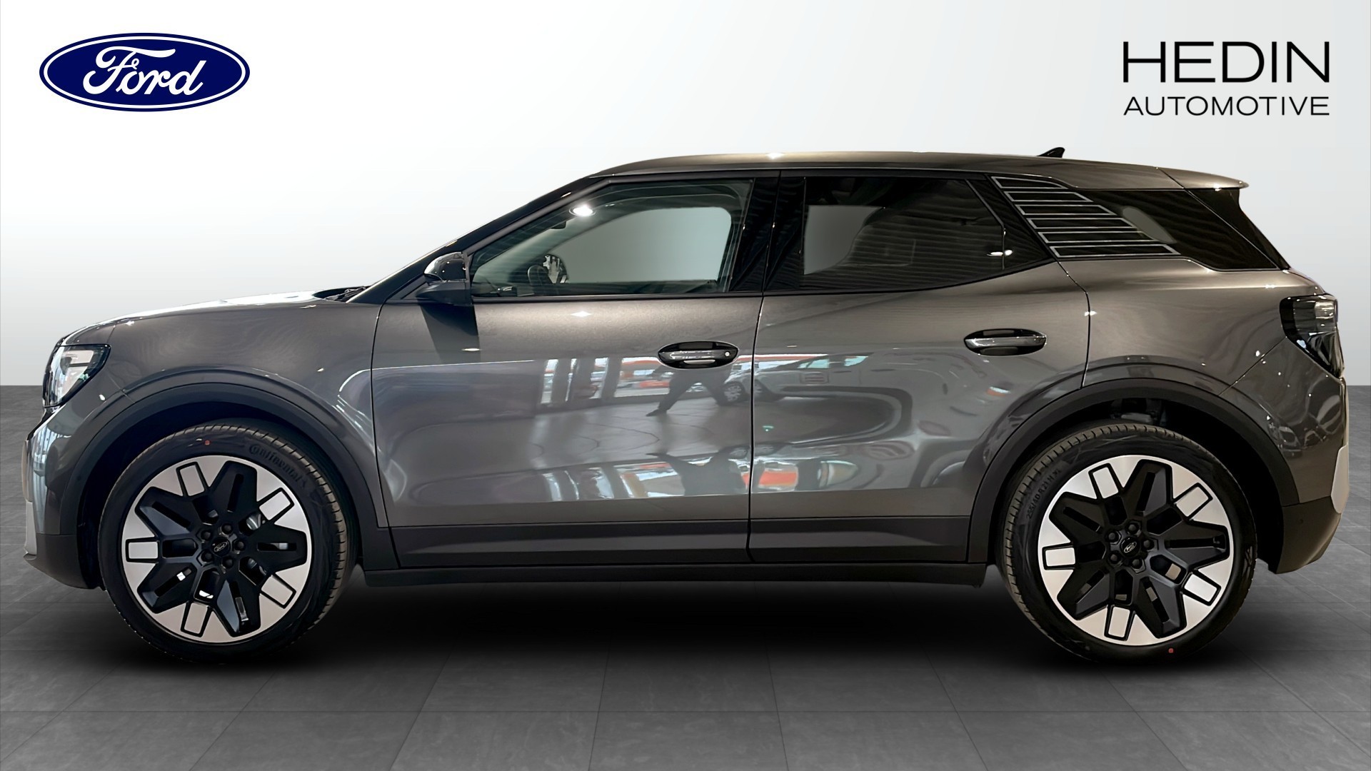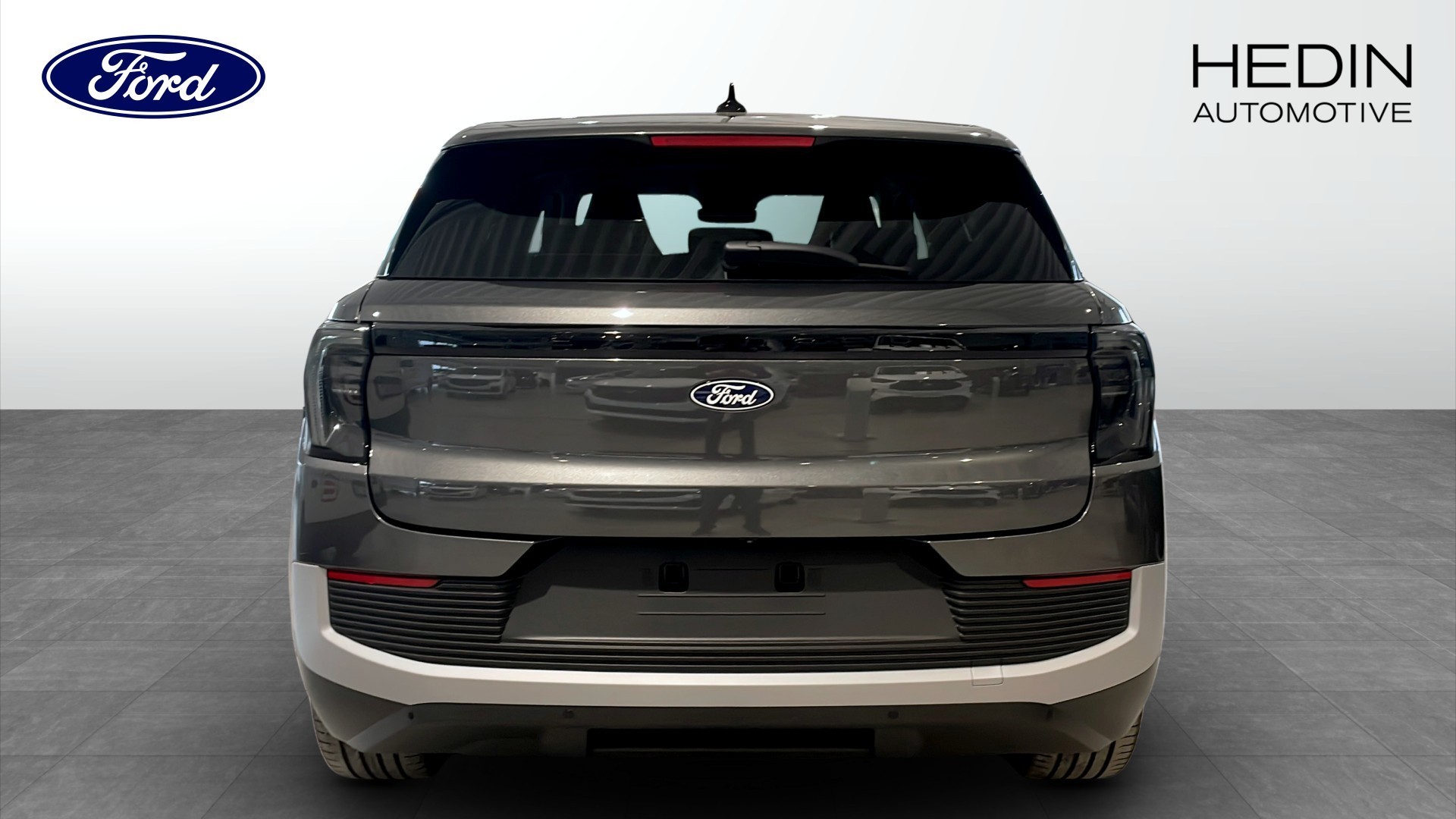 Ford Explorer Long Range RWD 286hk Business Edition, årsmodell 2026 – helt ny helelektrisk SUV i stilrena färgen Magnetic (grå) med 0 mil på mätaren.