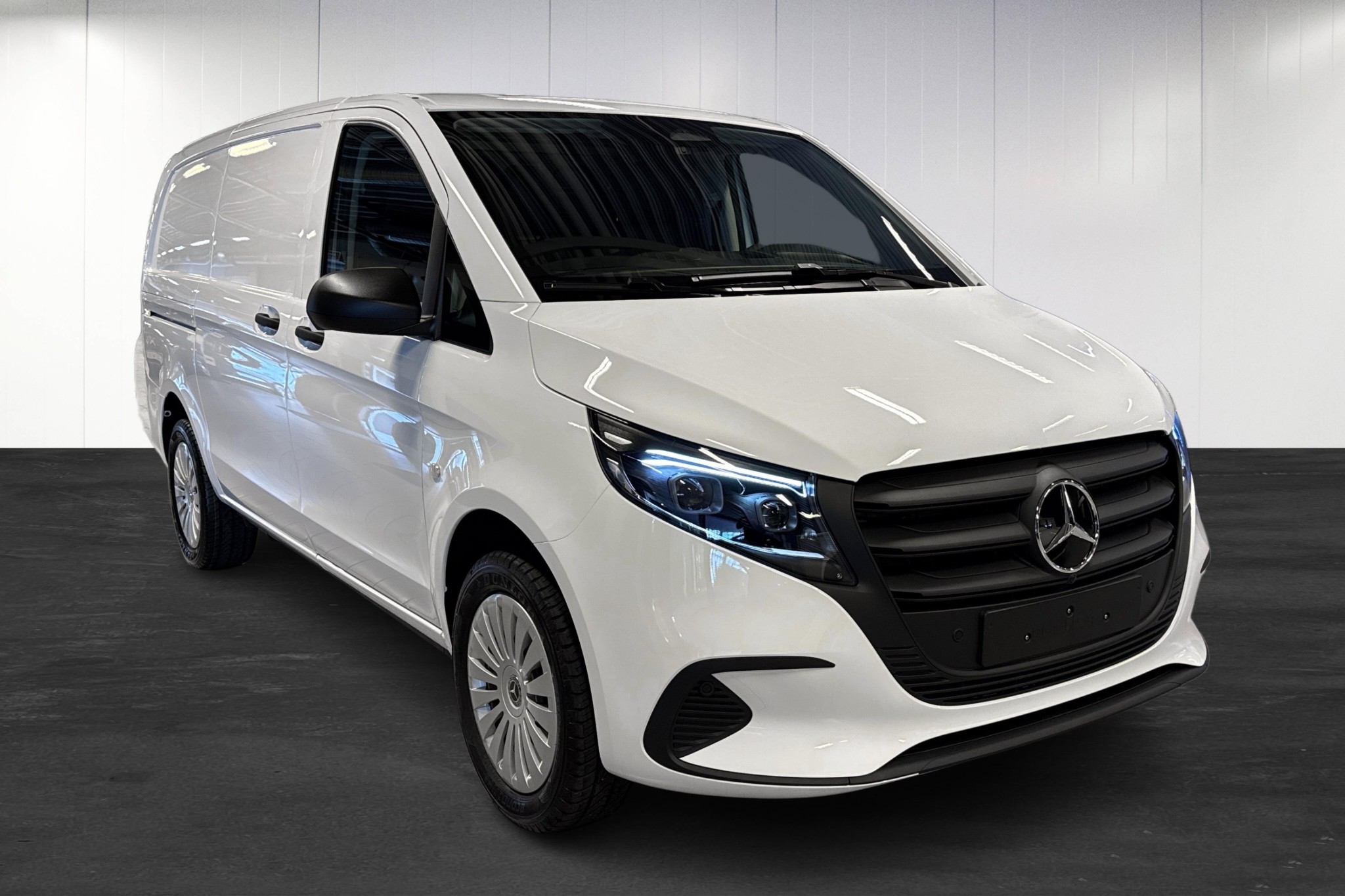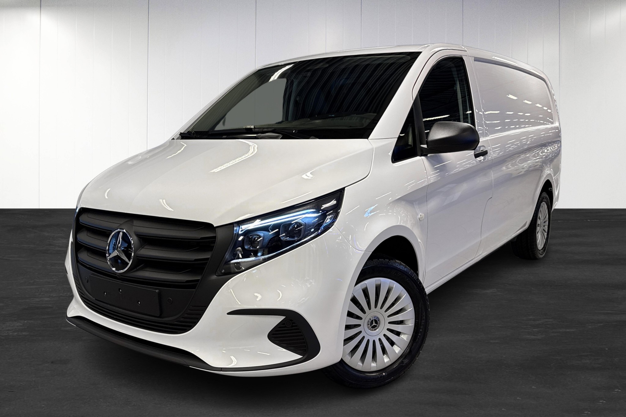 Mercedes-Benz Vito 116 CDI Skåp Lång PRO 4x4 9G-Tronic, årsmodell 2026 – fabriksny transportbil redo för leverans från Hedin Automotive Mercedes-Benz Malmö.