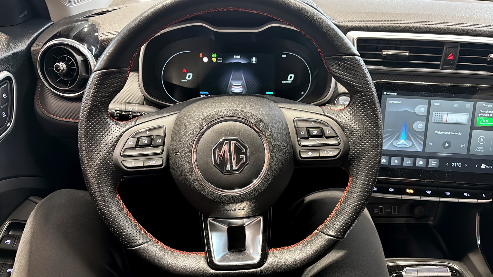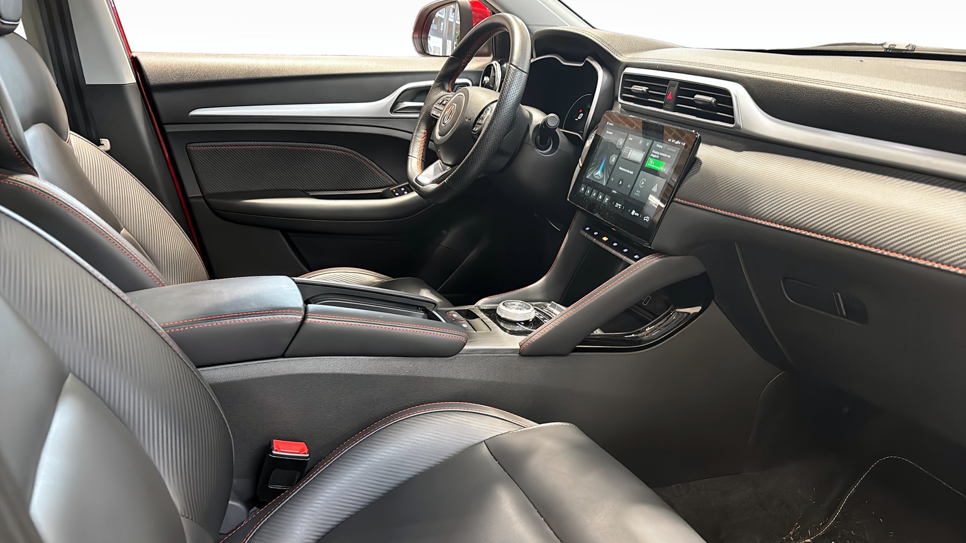 MG ZS EV Luxury 2022 i stilsäkra Diamond Red – en nästan ny, fullt elektrisk familjesuv med rätt utrustning och lång räckvidd.