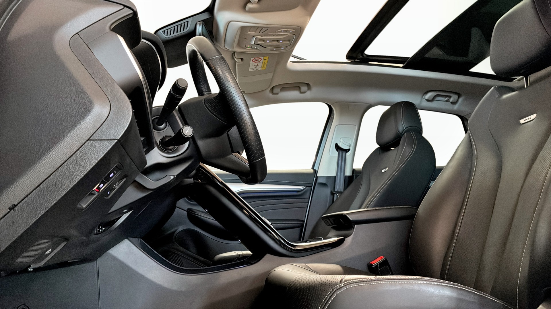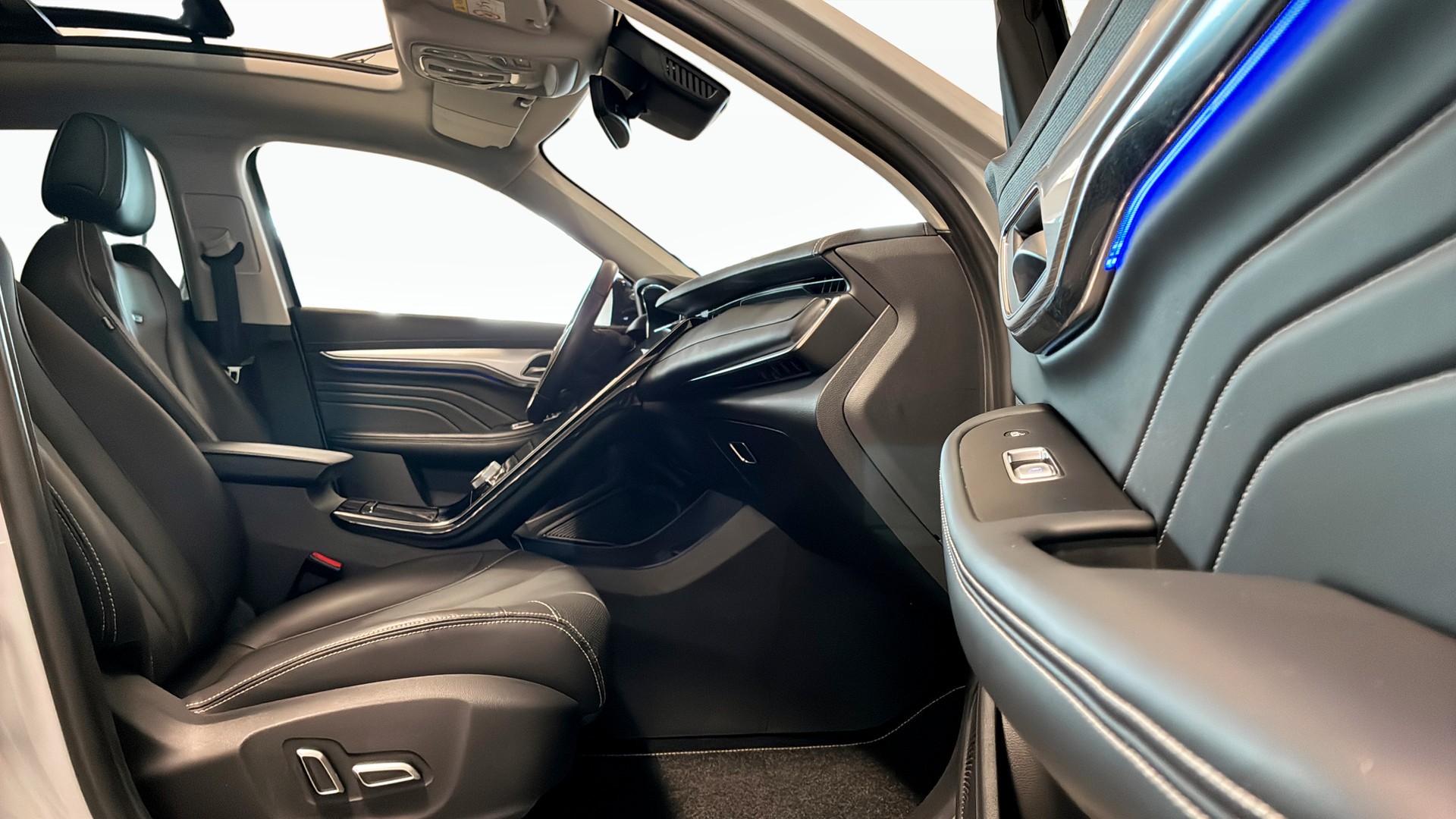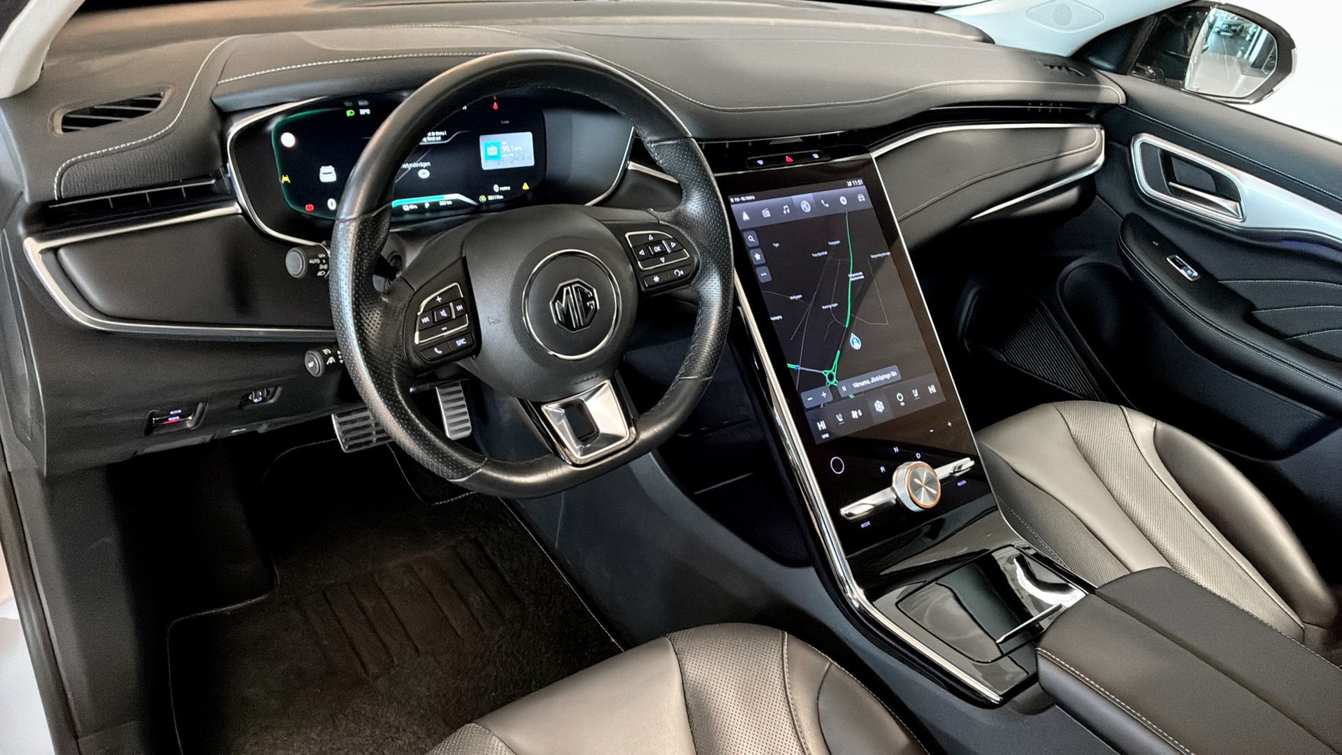 Invändigt möts du av en lyxig kupé med helskinnsklädsel, elstolar för både förare och passagerare, ratt- och sätesvärme samt öppningsbart panoramatak som släpper in ordentligt med ljus. Den stora skärmen med inbyggd GPS, Apple CarPlay, Android Auto och trådlös telefonladdare gör resan både smart och enkel.