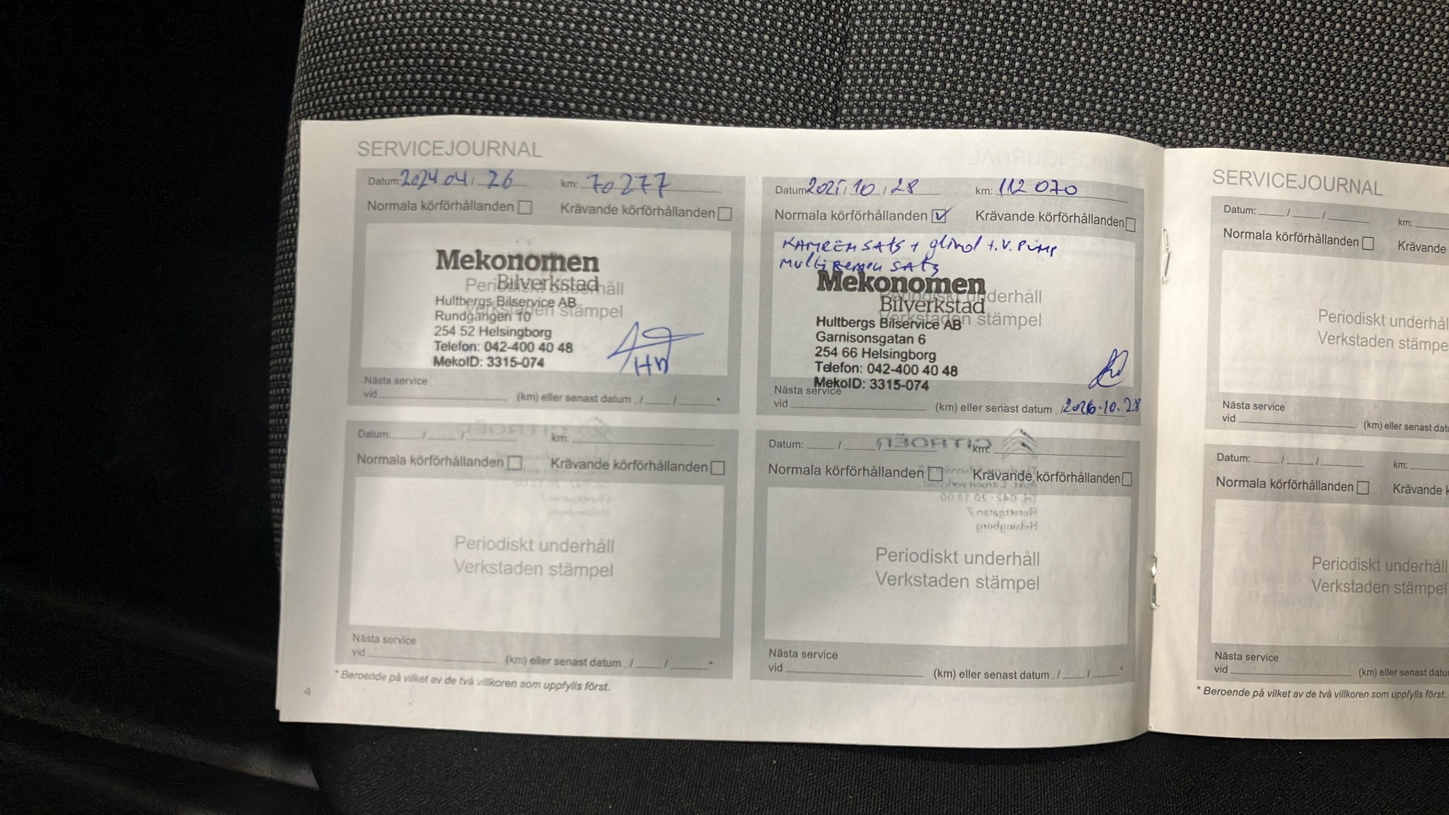 Åtgärdat: Frambromsar – byte belägg, Bakbromsar – byte skivor, Nya torkarblad, nya sommardäck (två av däcken har 4mm)!