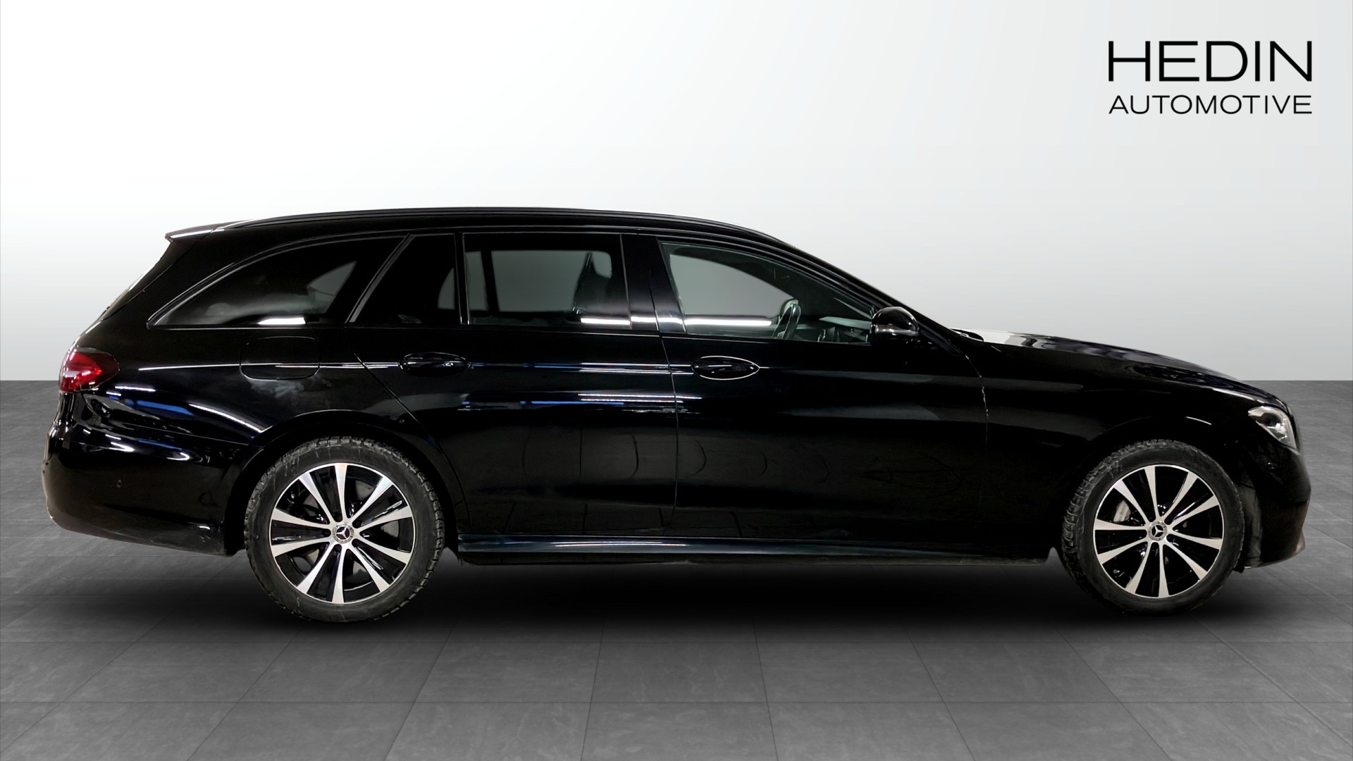 Bilen är en E-Klass kombi med AMG Line exteriör/interiör, svart solid lack, AMG 18" lättmetallfälgar, sportmultifunktionsratt i nappa, innertak i svart tyg och komfortchassi – en riktigt sportig och elegant kombination. Panoramatakluckan ger en ljus och luftig kupé och konstläder/mikrofiberklädseln ger en tydlig premiumkänsla.