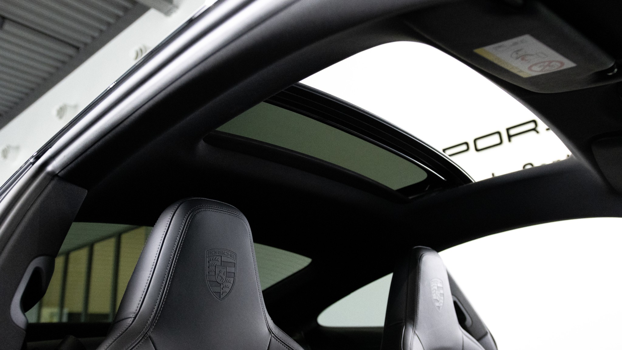 - Porschevapen präglade på nackstöd