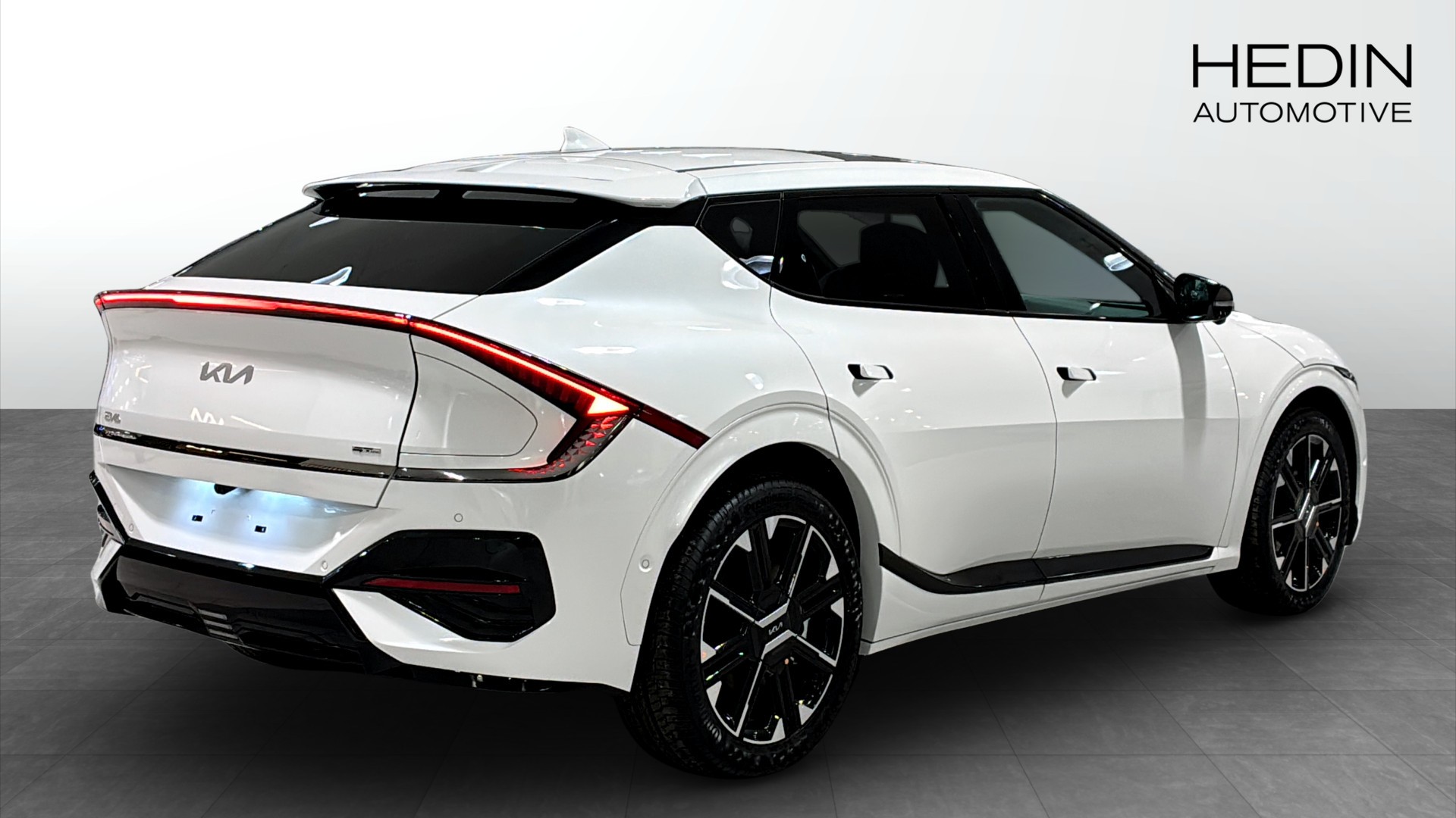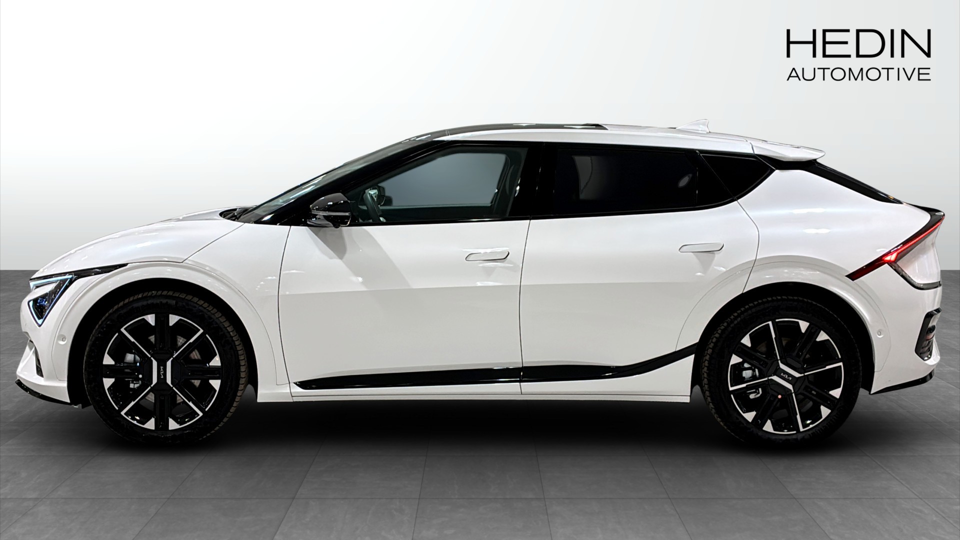 Kia EV6 GT Line AWD Long Range 2026 – en helt ny, fullutrustad el-SUV med fyrhjulsdrift och lång räckvidd. Vit kaross, sportiga 20" aluminiumfälgar och sollucka ger ett modernt och exklusivt intryck.