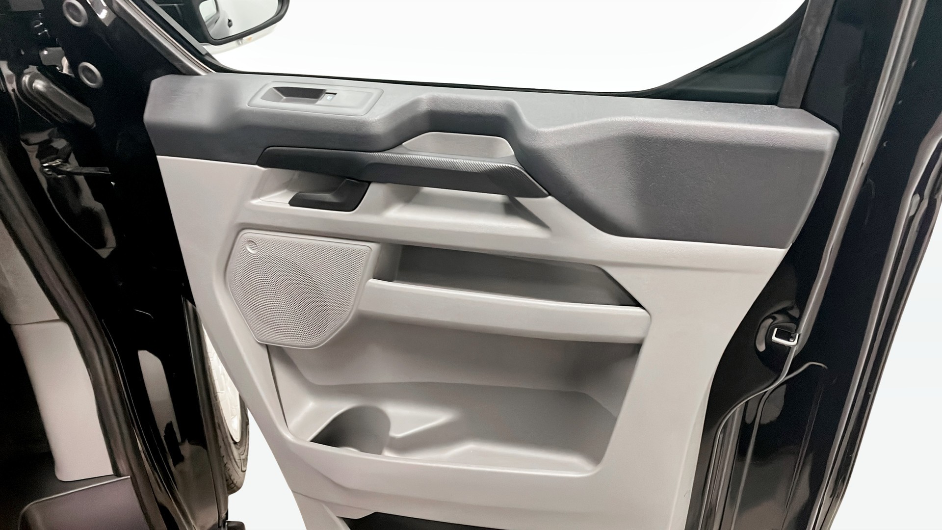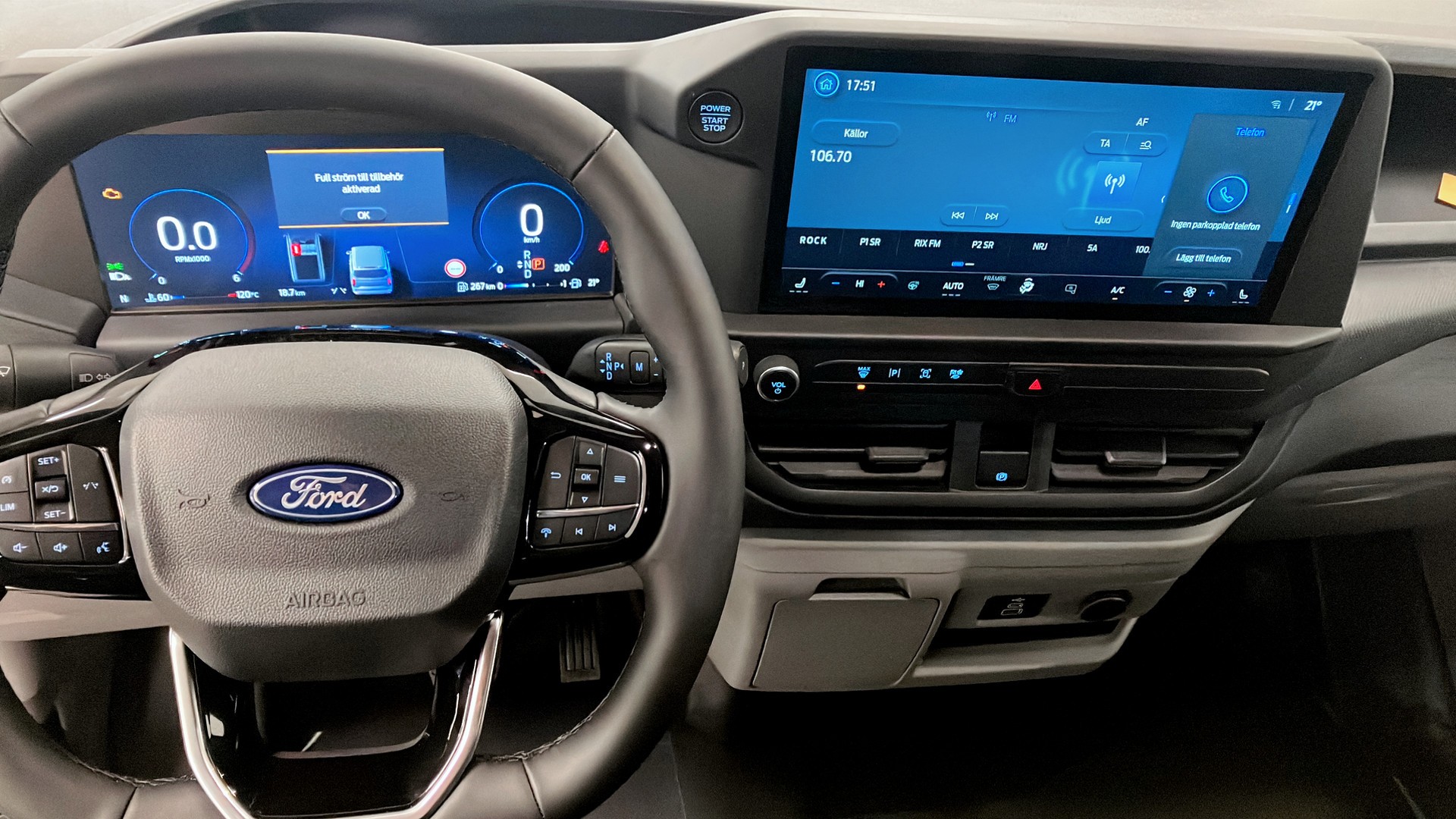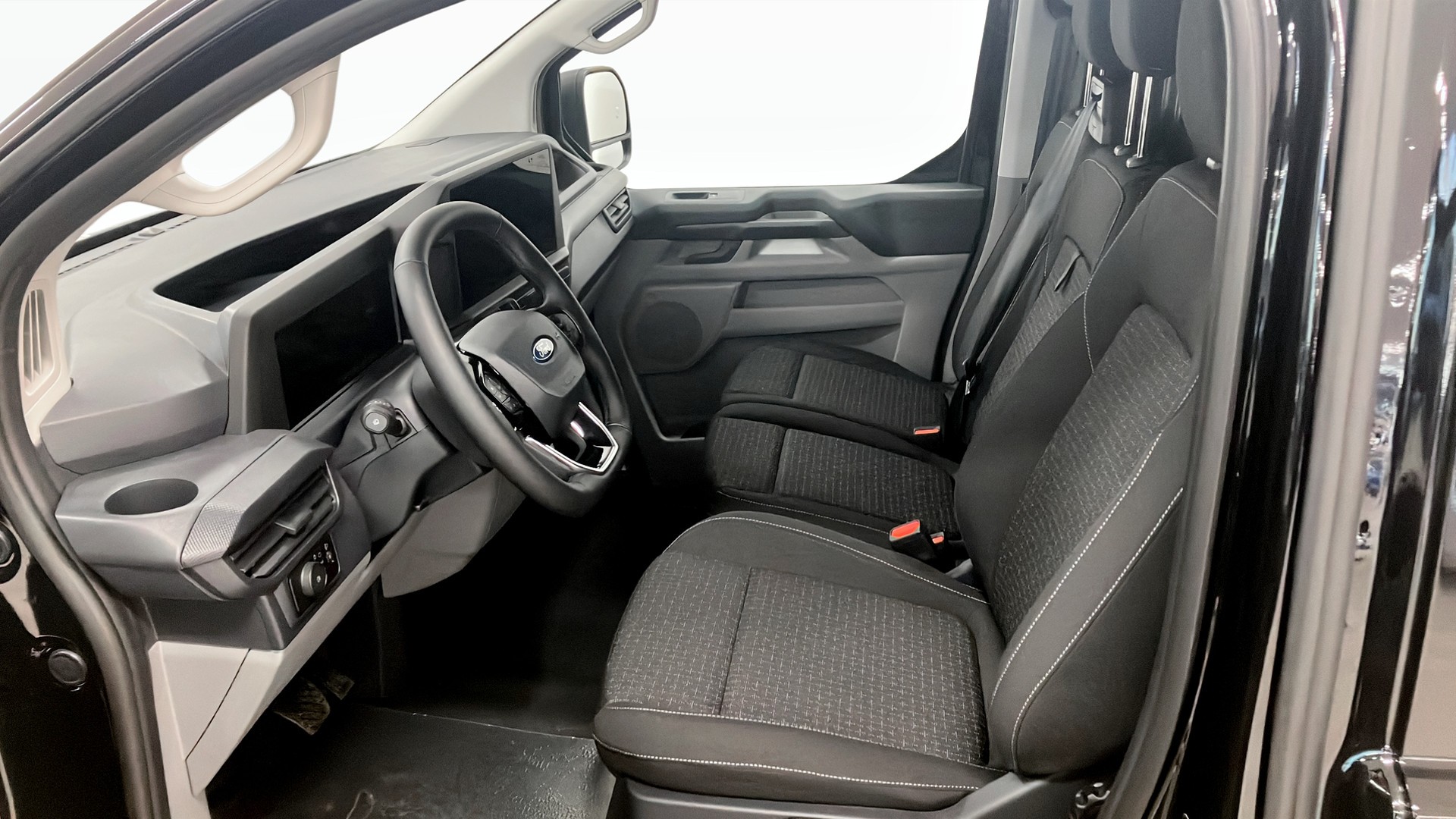 Ford Transit Custom Trend Skåp 320L 136 Aut Fwd, årsmodell 2026 – en fabriksny, svart Agate Black transportbil med fokus på komfort, säkerhet och smart lastlösning.