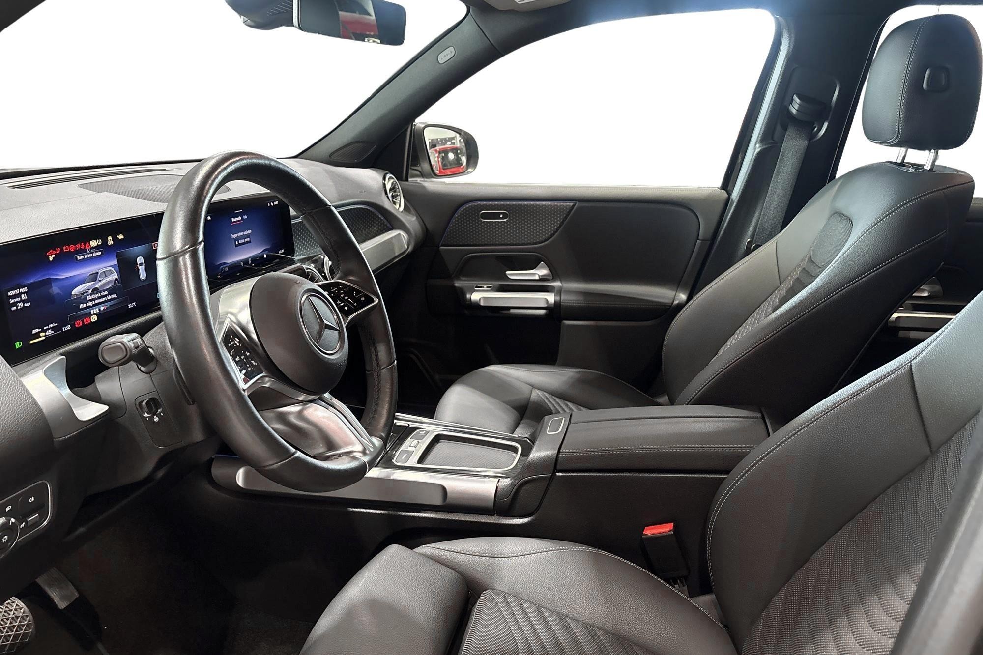 Interiören präglas av Widescreen Cockpit, MBUX multimediasystem med navigation, belyst interiörpanel samt Ambient light med 64 färger. Komforten är hög med komfortstolar fram, elinställbart svankstöd, vinterpaket med eluppvärmda framstolar och uppvärmd multifunktionsratt, automatisk klimatanläggning samt praktiskt förvaringspaket.