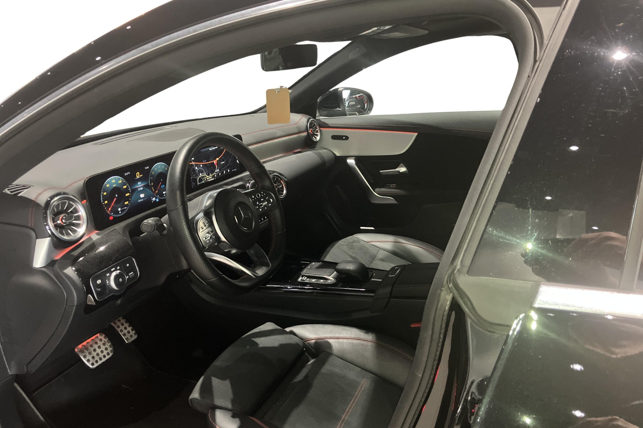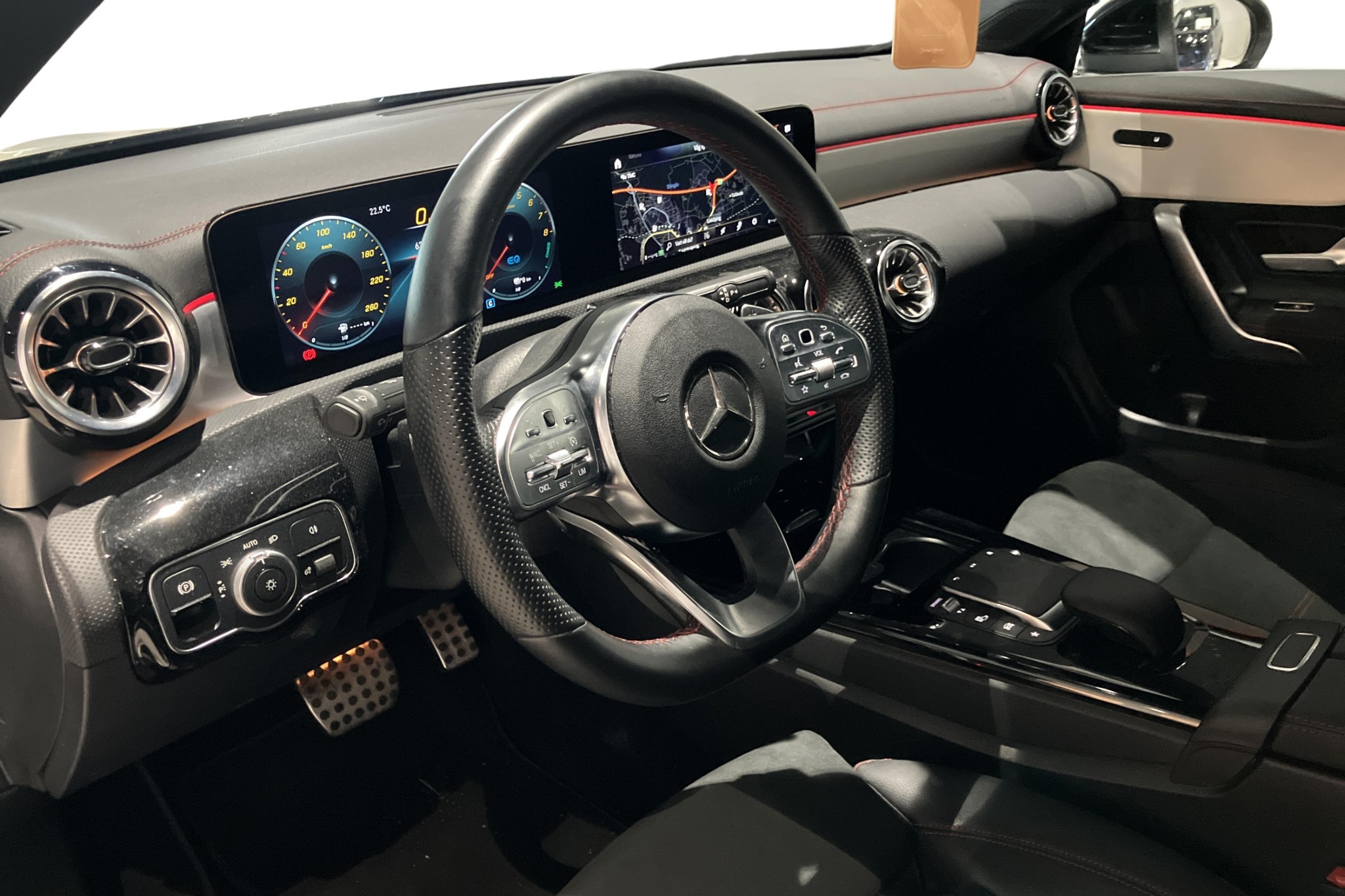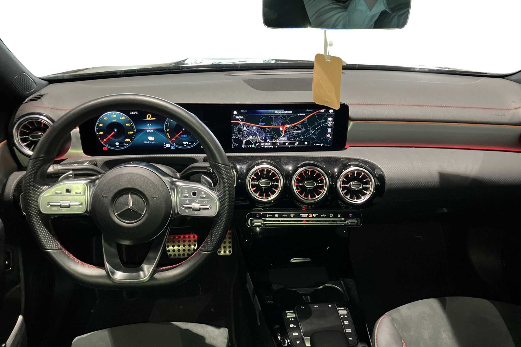 Utrustningsmässigt får du bland annat AMG-styling, öppningsbart panoramatak, sportstolar i alcantara/skinn, backkamera, parkeringssensorer fram och bak, LED-strålkastare, navigation, Apple CarPlay/Android Auto, digital instrumentering, två klimatzoner, sätesvärme fram, Keyless start samt motorvärmare – perfekt för svenska vintrar.