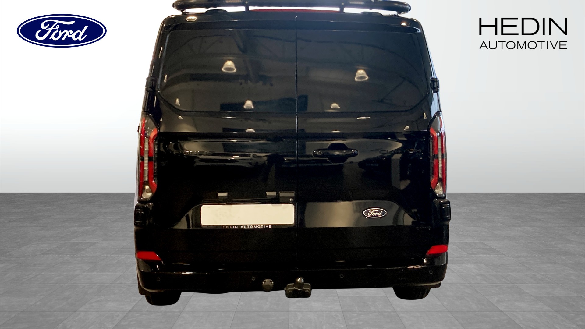 Ford Transit Custom Dubbelhytt i skåp Black Edition Limited, årsmodell 2026 – fabriksny, svart och riktigt välutrustad transportbil för dig som vill ha både komfort och kapacitet i jobbet.