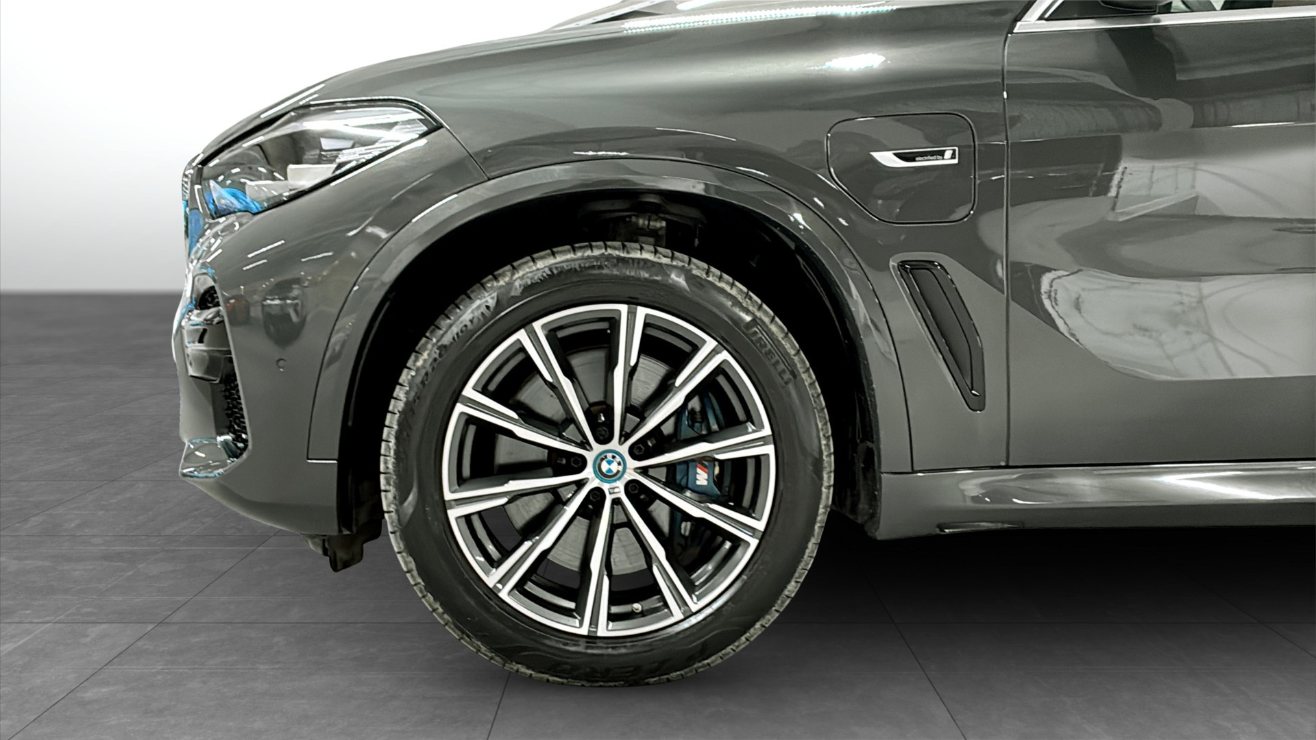 BMW X5 xDrive45e M Sport Plug-in Hybrid 2023 i elegant Dravit Grey metallic – en rymlig och lyxig SUV med låg förbrukning och hög komfort.