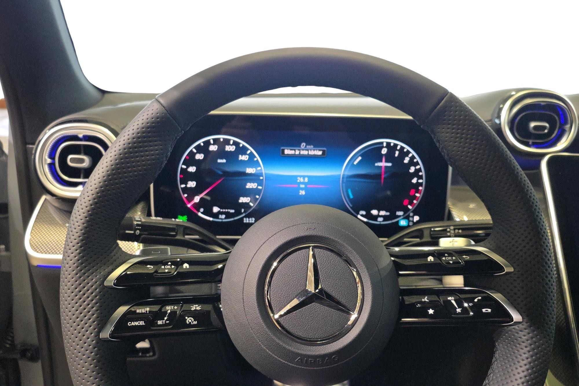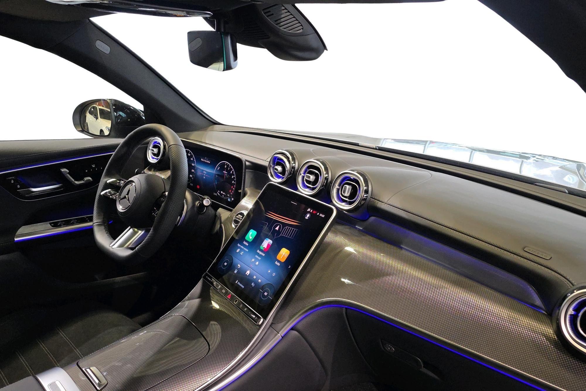 Förarkomforten är i topp med elstolar med minne, elinställbart svankstöd, värme i framstolarna, eluppvärmd multifunktionsratt, THERMATIC 2-zons klimat och luftfjädring på bakaxeln. Coupé-karossen kompletteras av AMG Line exteriör, Nightpackage, fotsteg i aluminiumoptik, skärmbreddare i bilens kulör och panoramatak i glas som ger en riktigt exklusiv känsla.