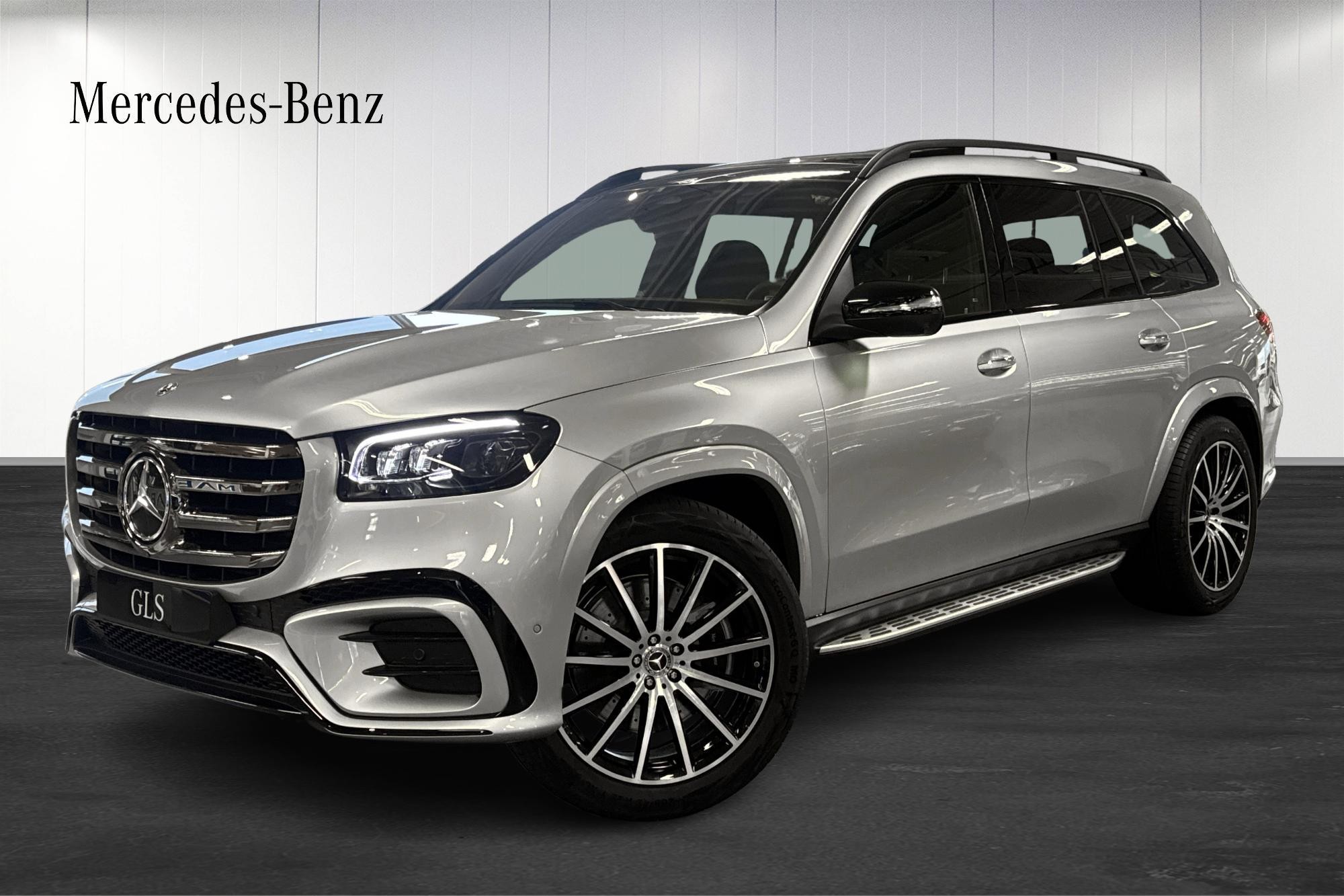 Mercedes‑Benz GLS 450 d 4MATIC, 2026, i elegant silver – en fabriksny, fullstor lyx-SUV med sju sittplatser och allt du behöver för bekväma och trygga mil, året runt.