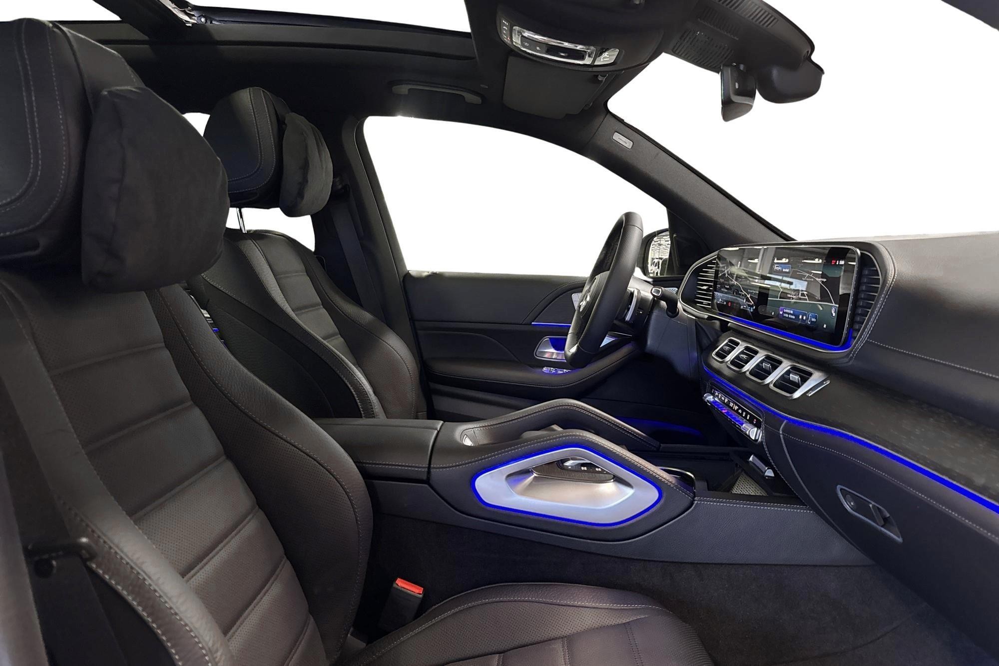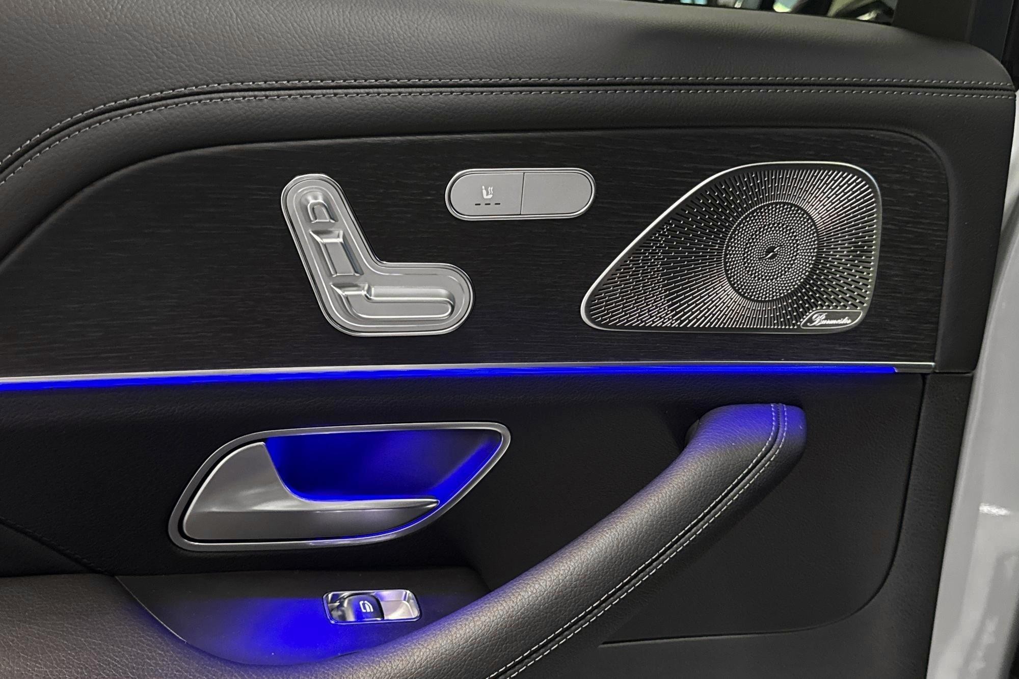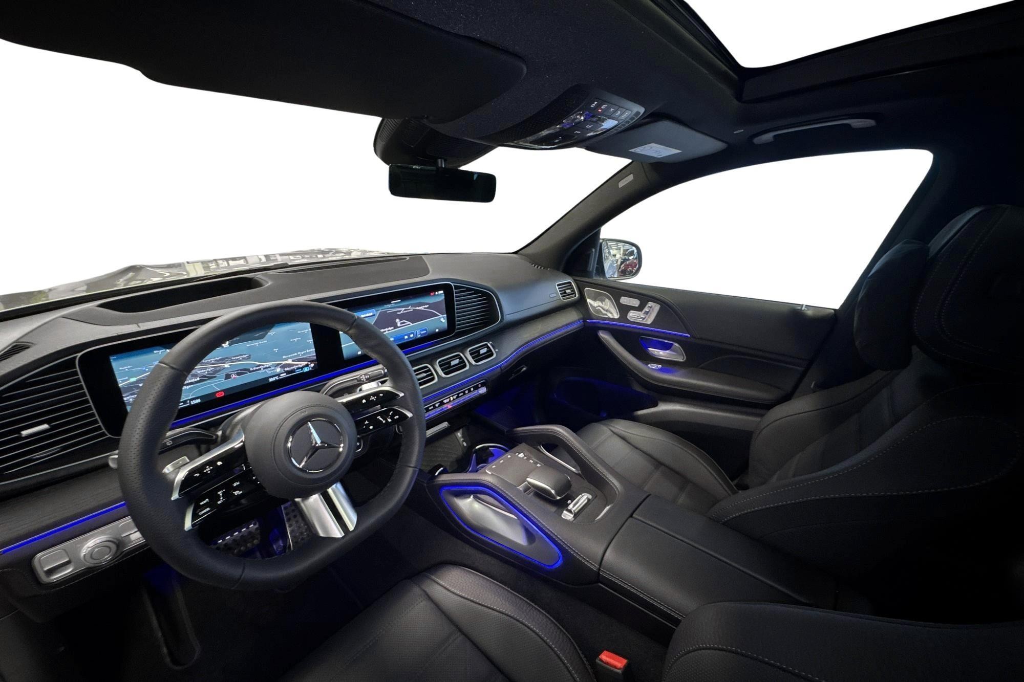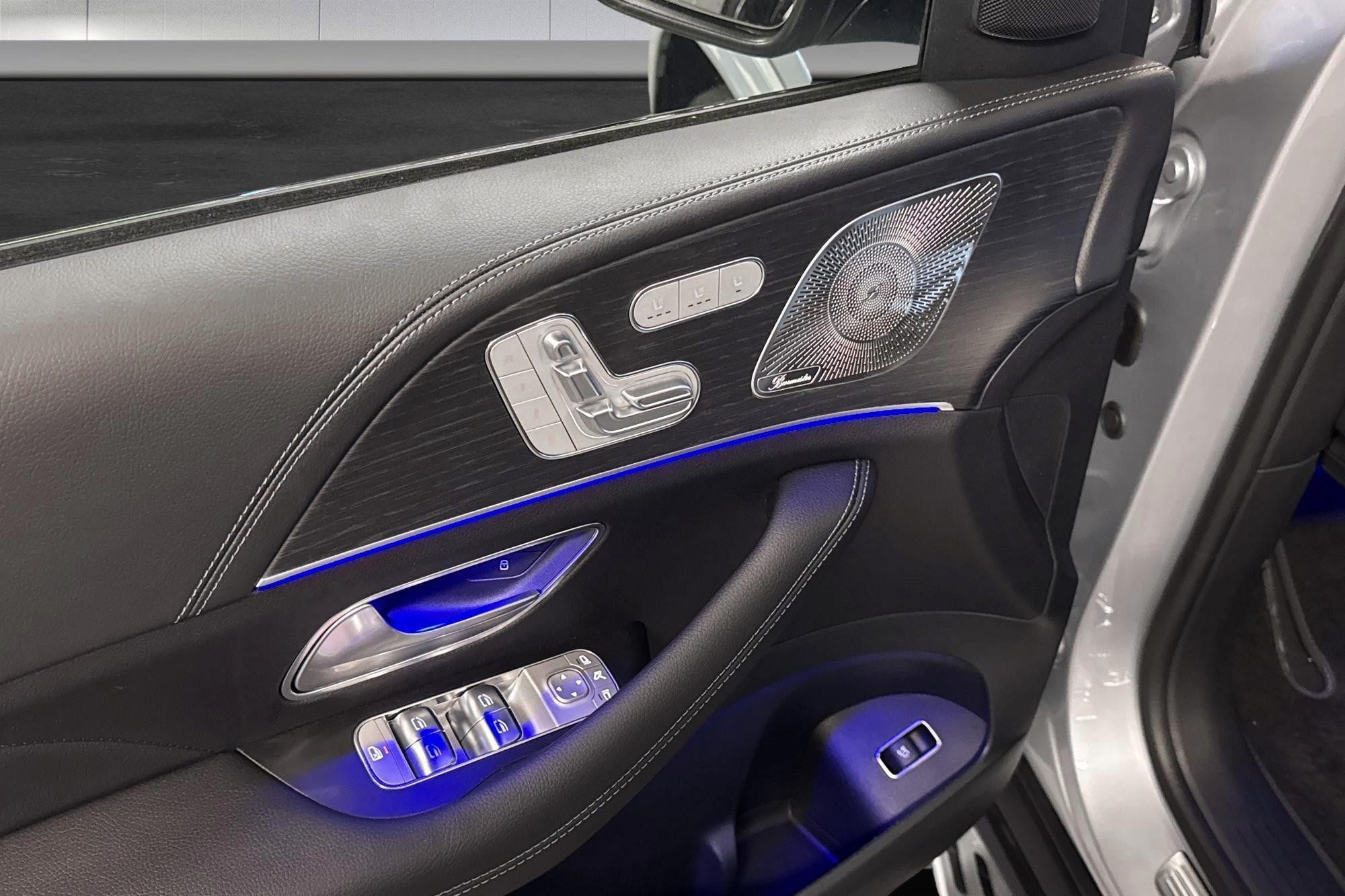 Utvändigt förstärks helhetsintrycket av AMG Line exteriör, 21" AMG lättmetallfälgar, Nightpackage och belysta instegslister – ett sportigt och exklusivt utseende som matchar bilens prestanda.