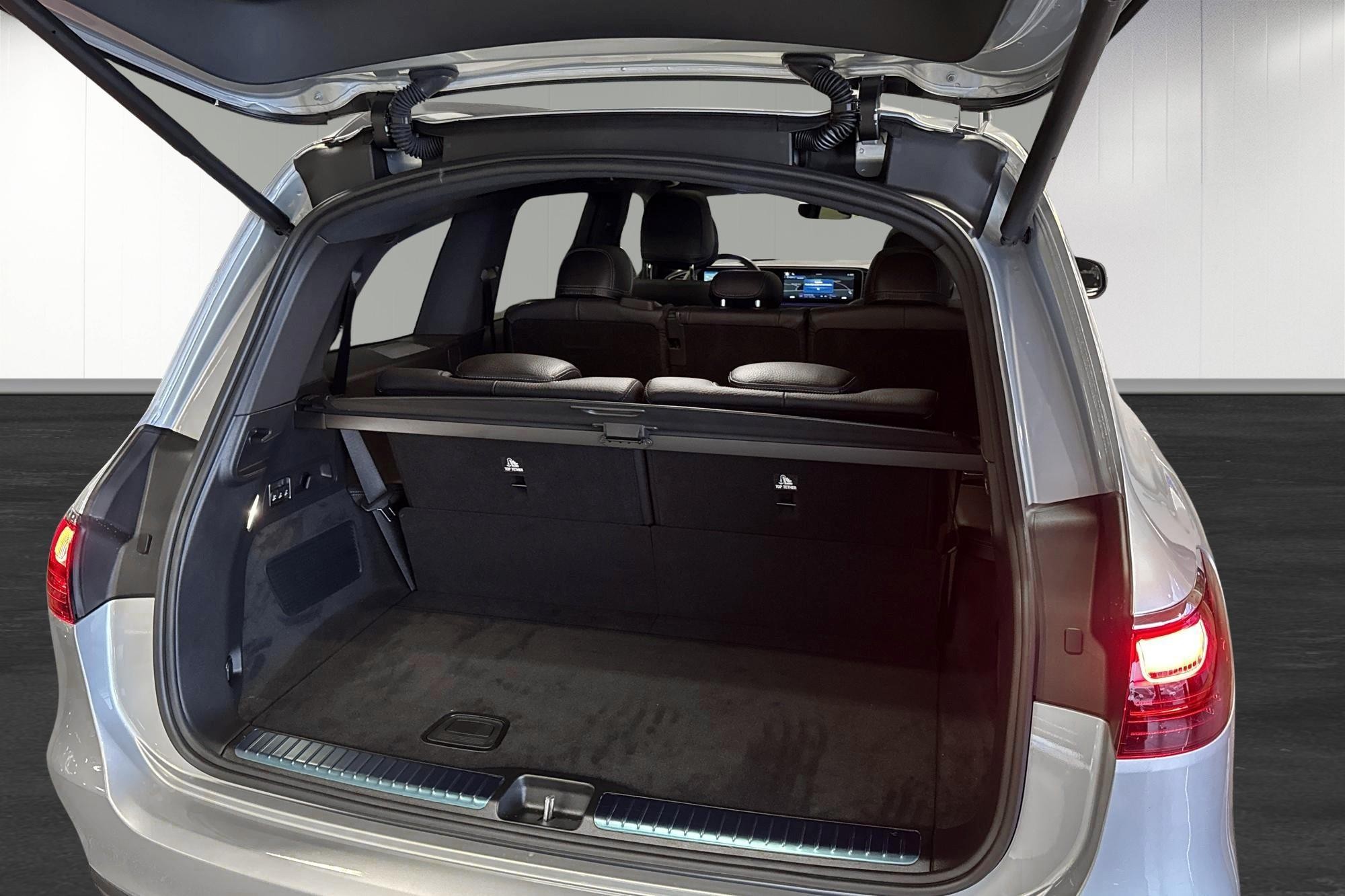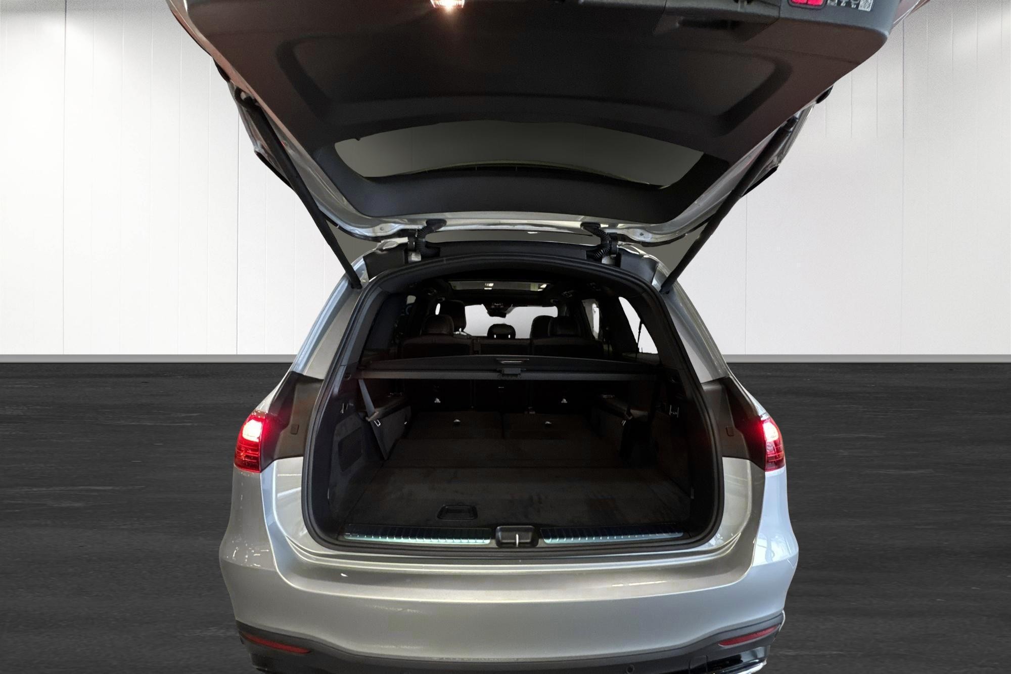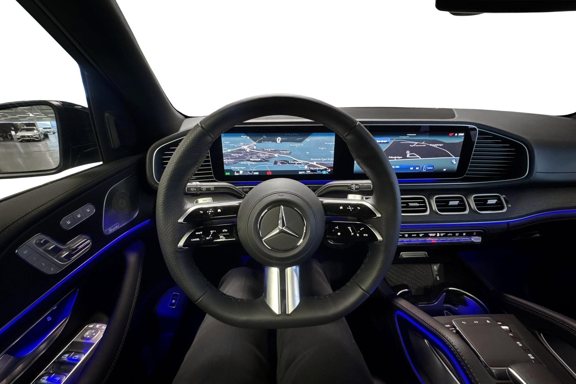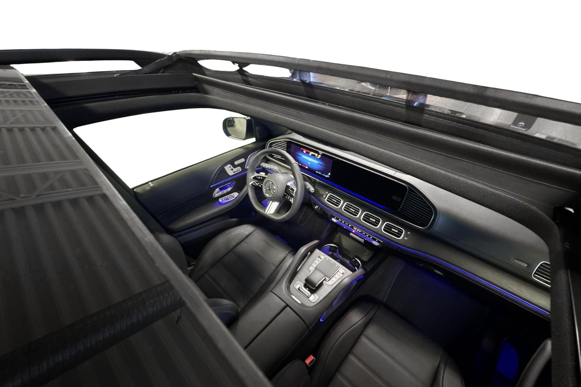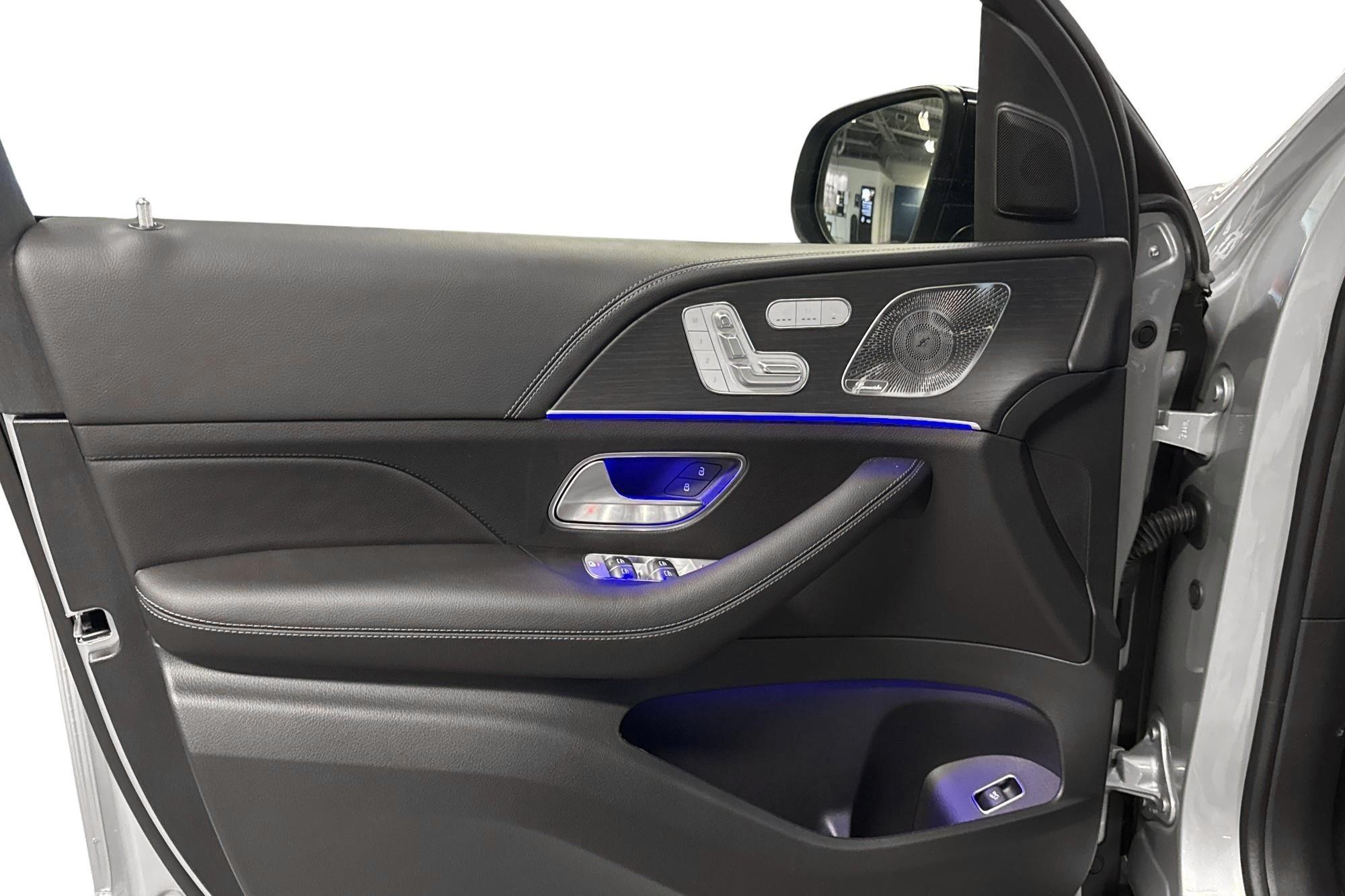 Utvändigt förstärks helhetsintrycket av AMG Line exteriör, 21" AMG lättmetallfälgar, Nightpackage och belysta instegslister – ett sportigt och exklusivt utseende som matchar bilens prestanda.