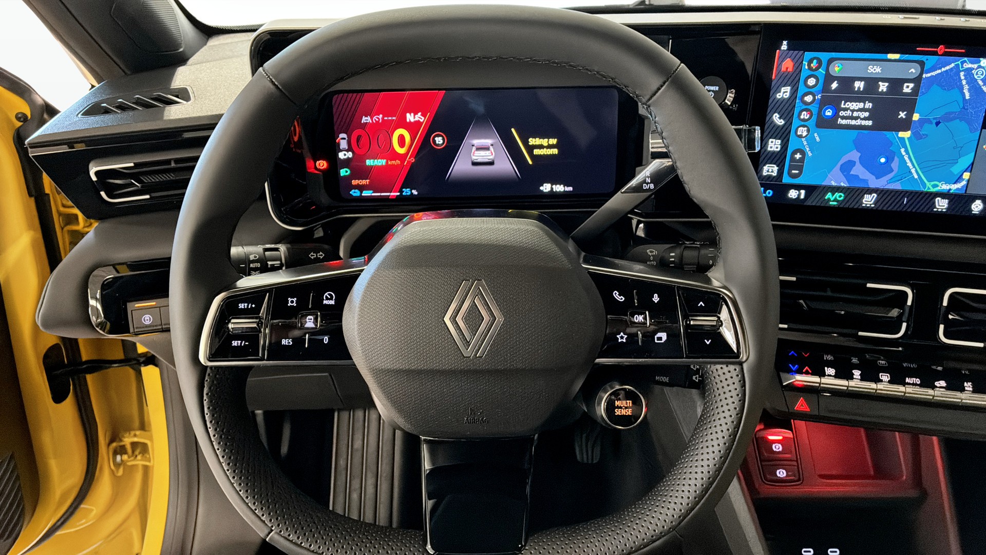 Invändigt möts du av en modern digital miljö med inbyggt Google, Android Auto/Apple CarPlay, Harman Kardon-ljudsystem, induktionsladdning för mobil, anpassningsbar stämningsbelysning och Renaults virtuella assistent “Reno”. Komforten säkras med eluppvärmda framstolar, eluppvärmd ratt, automatisk klimatanläggning och elinfällbara, eluppvärmda speglar.