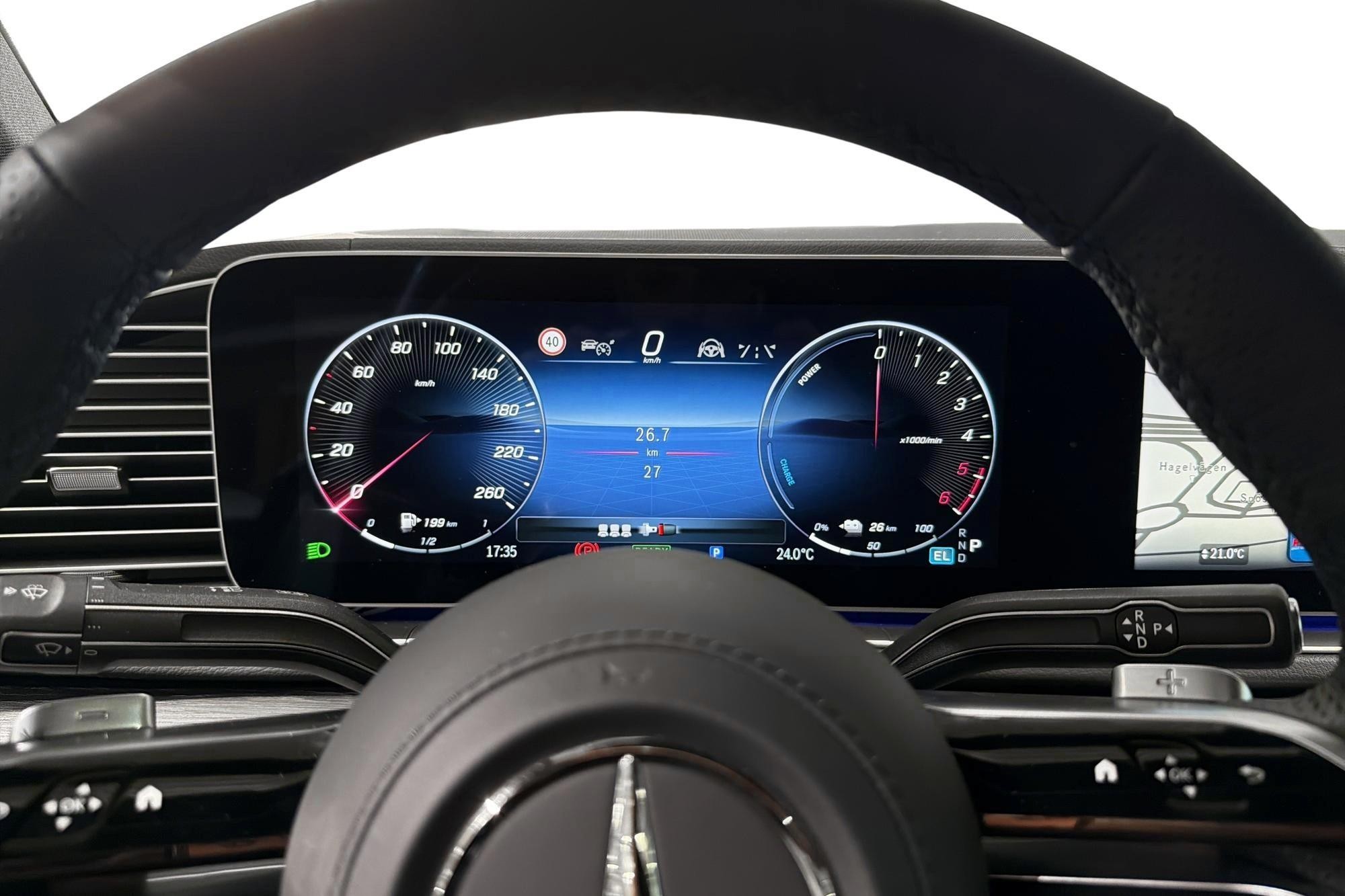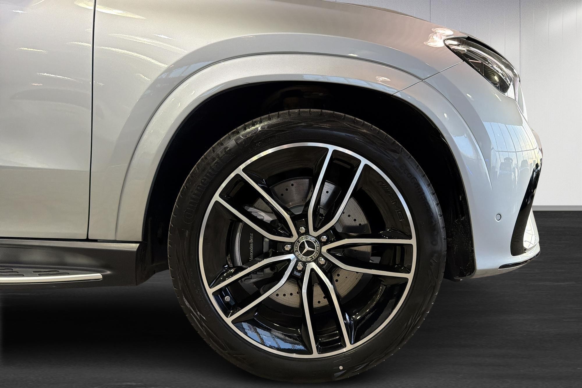 Bilen är silverfärgad och rikligt utrustad med bland annat AMG Line exteriör/interiör, Nightpackage, 22" AMG lättmetallfälgar, MULTIBEAM LED-strålkastare, panoramatak samt fotsteg i aluminiumoptik. Komforten är i toppklass med AIRMATIC luftfjädring, adaptivt dämpningssystem, THERMOTRONIC 4-zons klimatanläggning, ventilerade och uppvärmda framsäten, eluppvärmt baksäte, minnespaket och eluppvärmbar multifunktionssportratt i nappaläder.