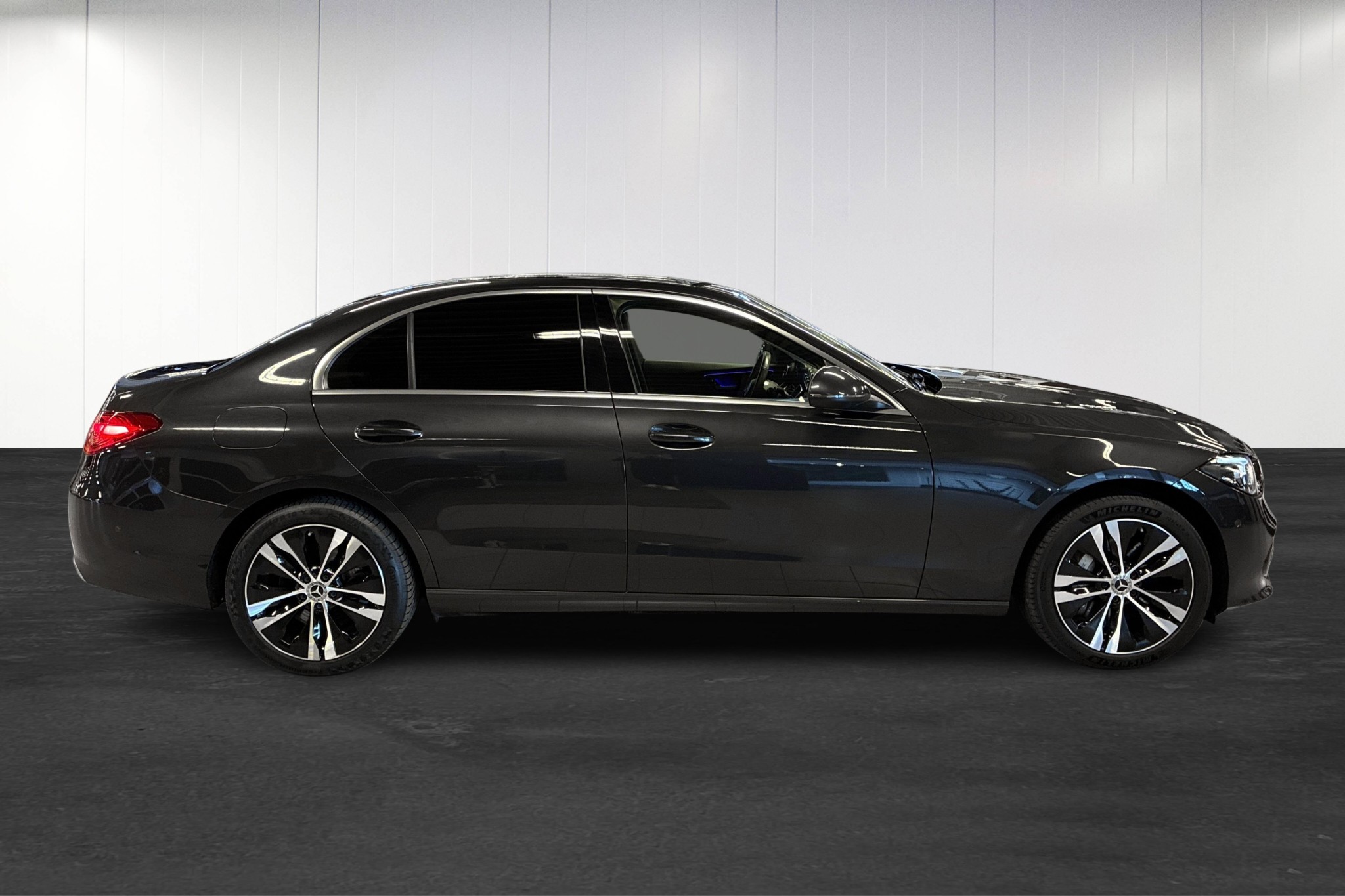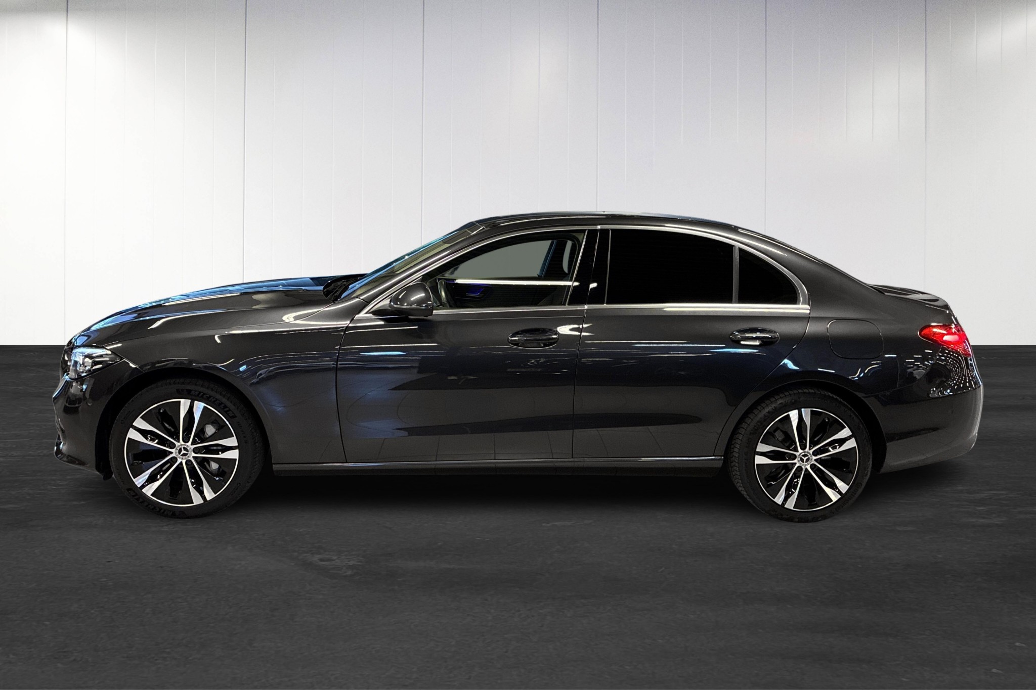 Mercedes-Benz C 300 e 9G-Tronic, årsmodell 2023, i elegant grafitgrå metallic – en modern laddhybrid som kombinerar komfort, prestanda och låg förbrukning. Bilen är svensksåld, först registrerad 2022-12-01 och har endast ca 9320 mil på mätaren.