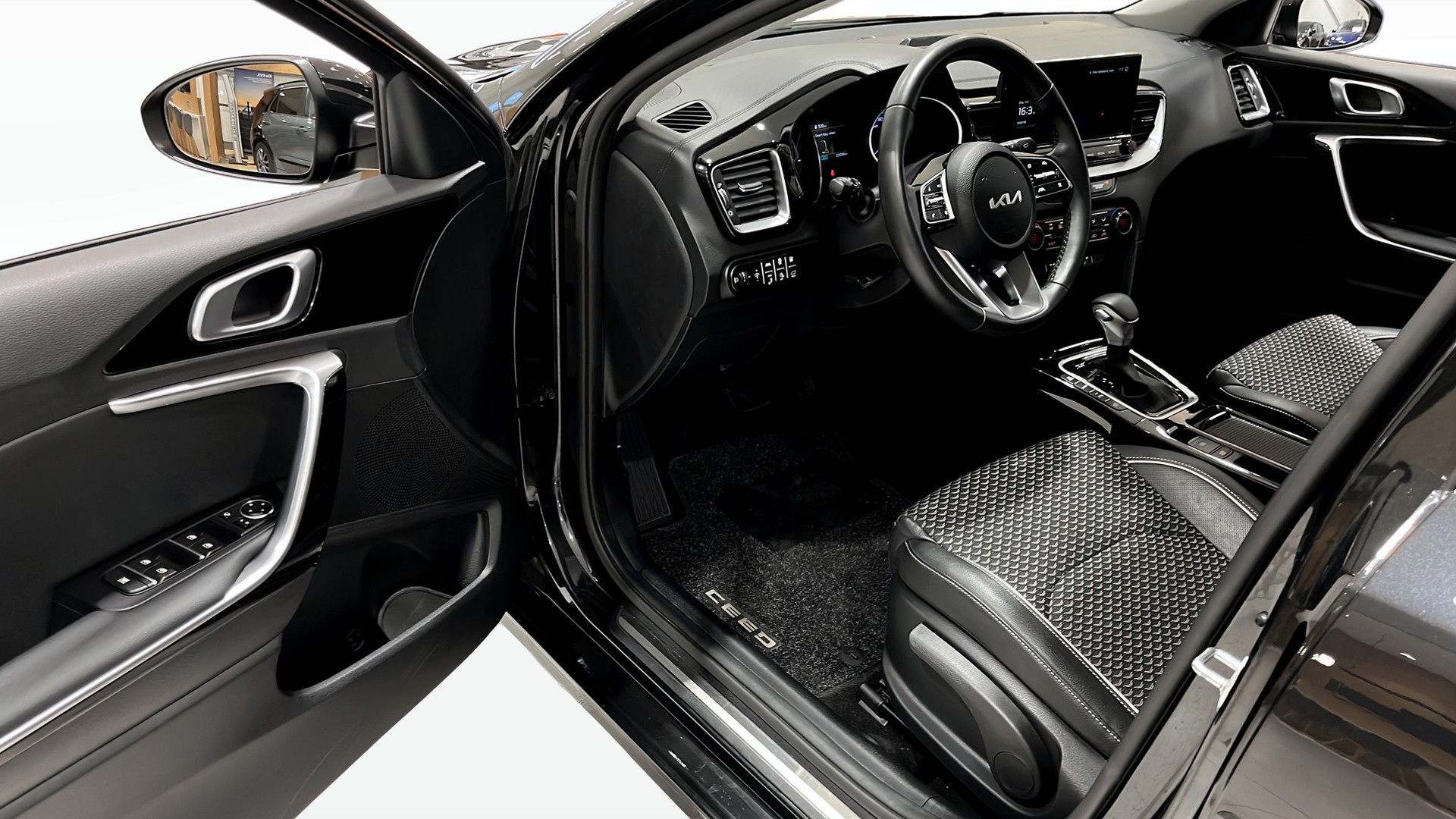 Svensksåld Ceed Sportswagon Plug-In Hybrid i elegant svart (Black Pearl) med automatlåda, framhjulsdrift och endast ca 2 200 mil. Laddhybridtekniken ger upp till omkring 5 mils elräckvidd enligt WLTP – perfekt för vardagspendling på el, med bensinmotorns trygghet på längre resor.