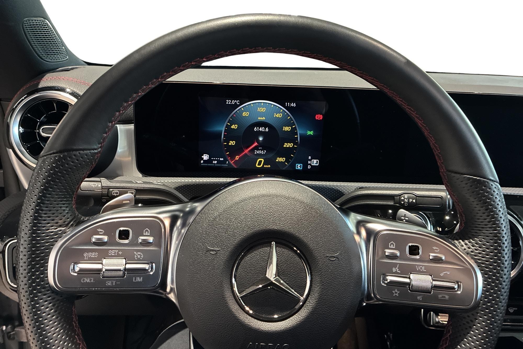 AMG Line-paketet ger bilen en sportig framtoning med AMG-styling, AMG-lättmetallfälgar, sportstolar, svart innertak och multifunktionssportratt i nappaläder. Invändigt möts du av MBUX multimediesystem med större mediedisplay, navigation, live traffic-information, pekplatta och digitalradio (DAB).