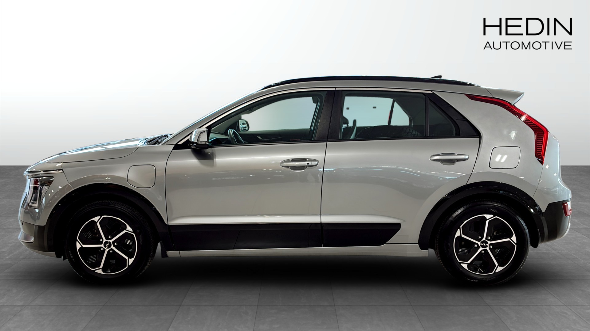 Kia Niro Plug-In Hybrid ACTION, årsmodell 2023, i stilren grå lack. En modern och snål laddhybrid med upp till ca 6,5 mils elektrisk räckvidd enligt WLTP – perfekt för vardagspendlingen på ren el, med bensinmotorn som trygg räckviddsförlängare när du ska längre.