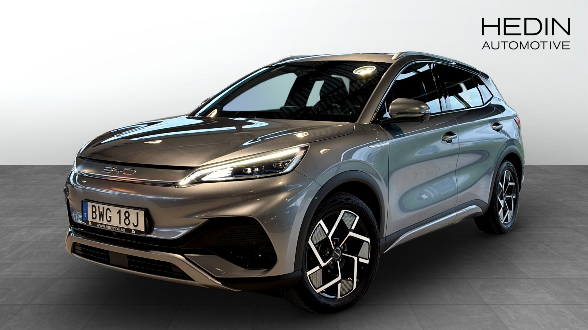 BYD ATTO 3 Design 60 kWh, 150 hk, i snyggt Blue Grey – en modern, rymlig el-SUV med riktigt låg körsträcka på ca 3300 mil.
