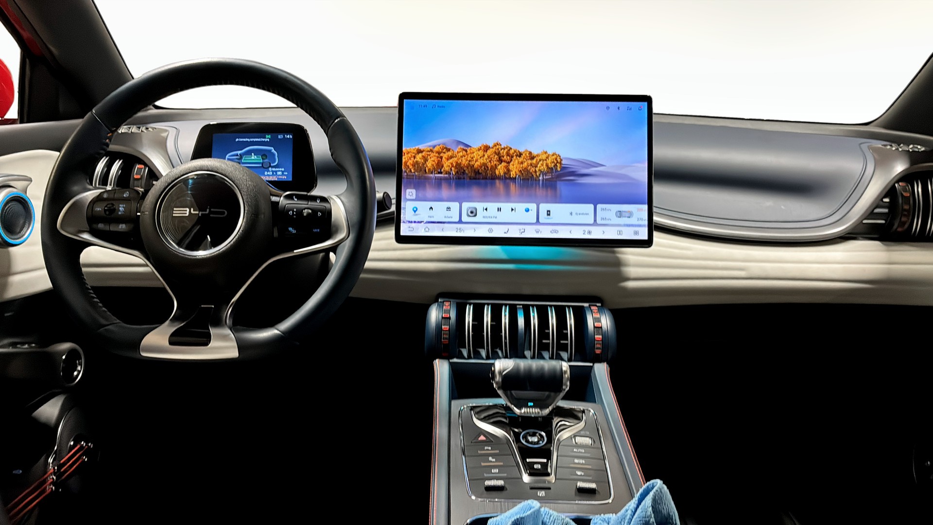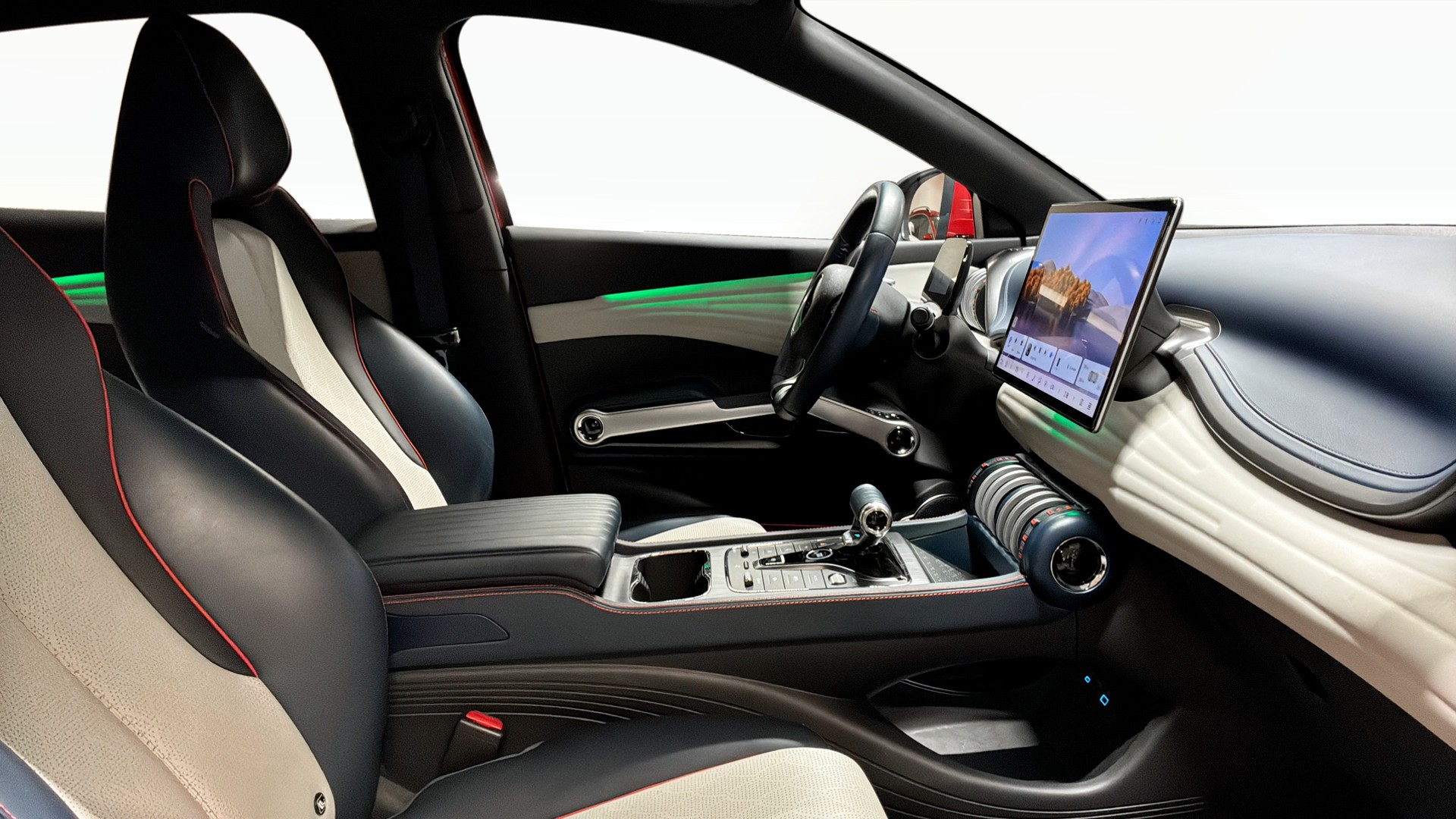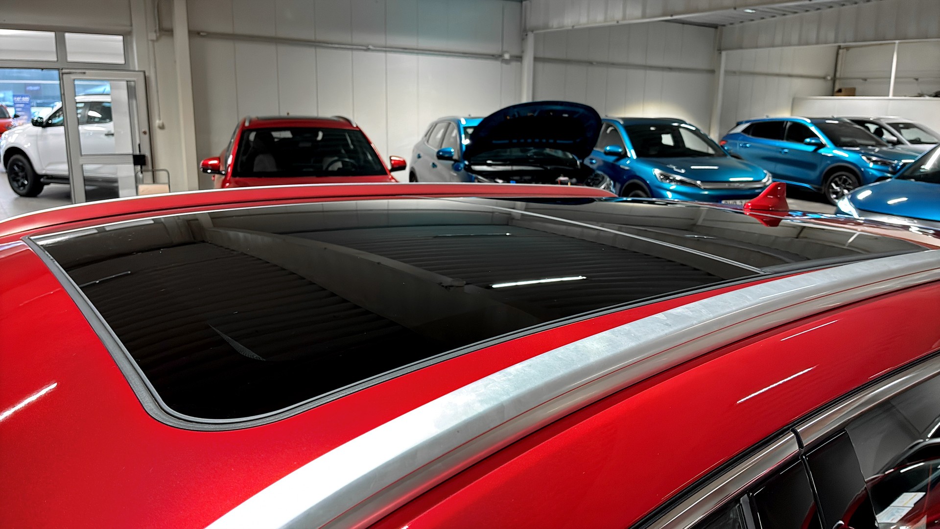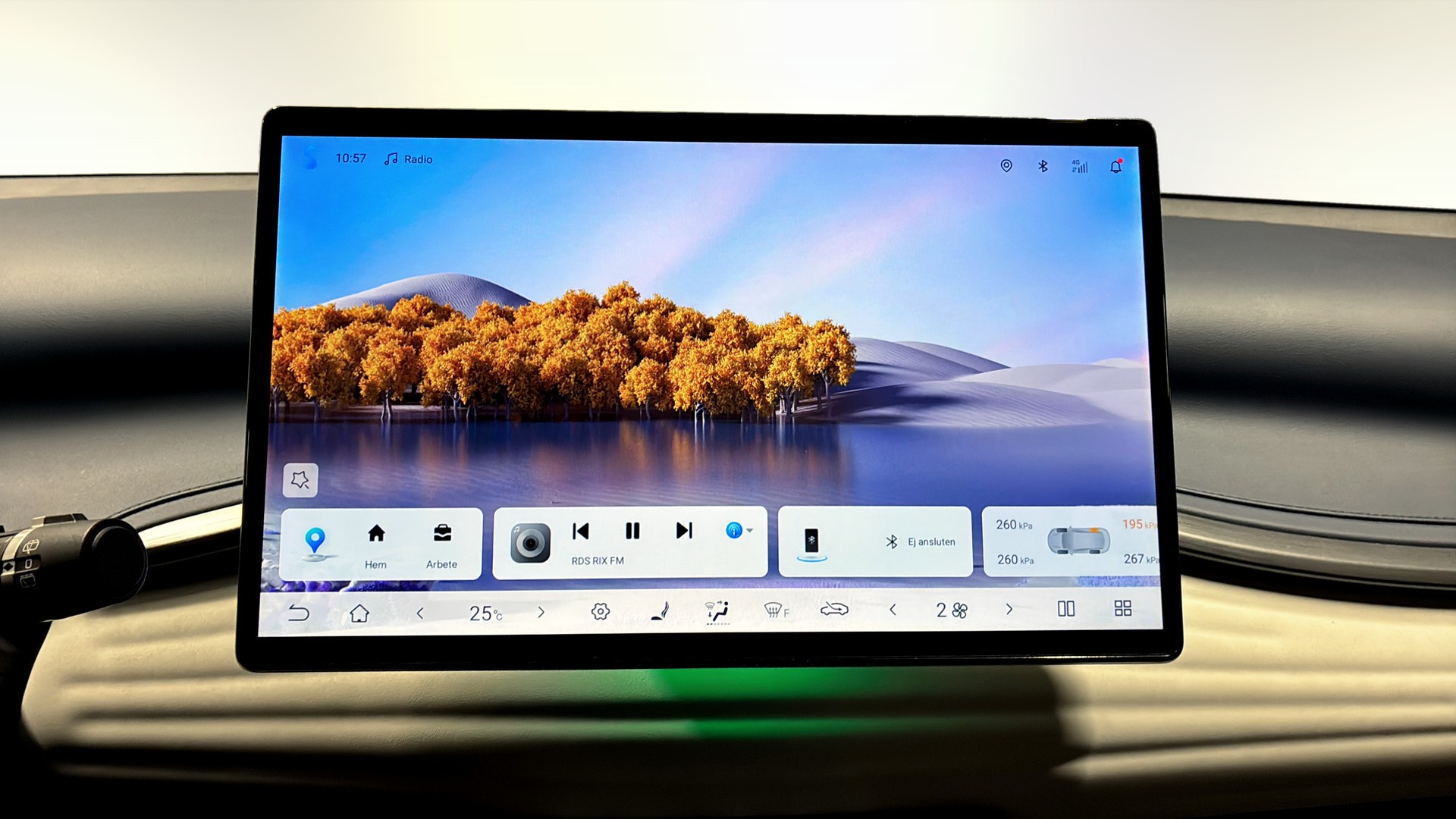 Utrustningen är generös: Design-version med stort panoramatak, 360°-kamera, parkeringssensorer fram och bak, adaptiv farthållare, filbytesvarning, döda vinkel-varning och backkamera som gör parkering och manövrering trygg och smidig. Invändigt möts du av en stor roterande 12,8” pekskärm med navigation, Bluetooth samt Android Auto/Apple CarPlay för enkel uppkoppling. Elstolar fram, stolsvärme, ACC klimatanläggning, värmepump, elhissar runt om och tonade rutor bak ger hög komfort året runt.