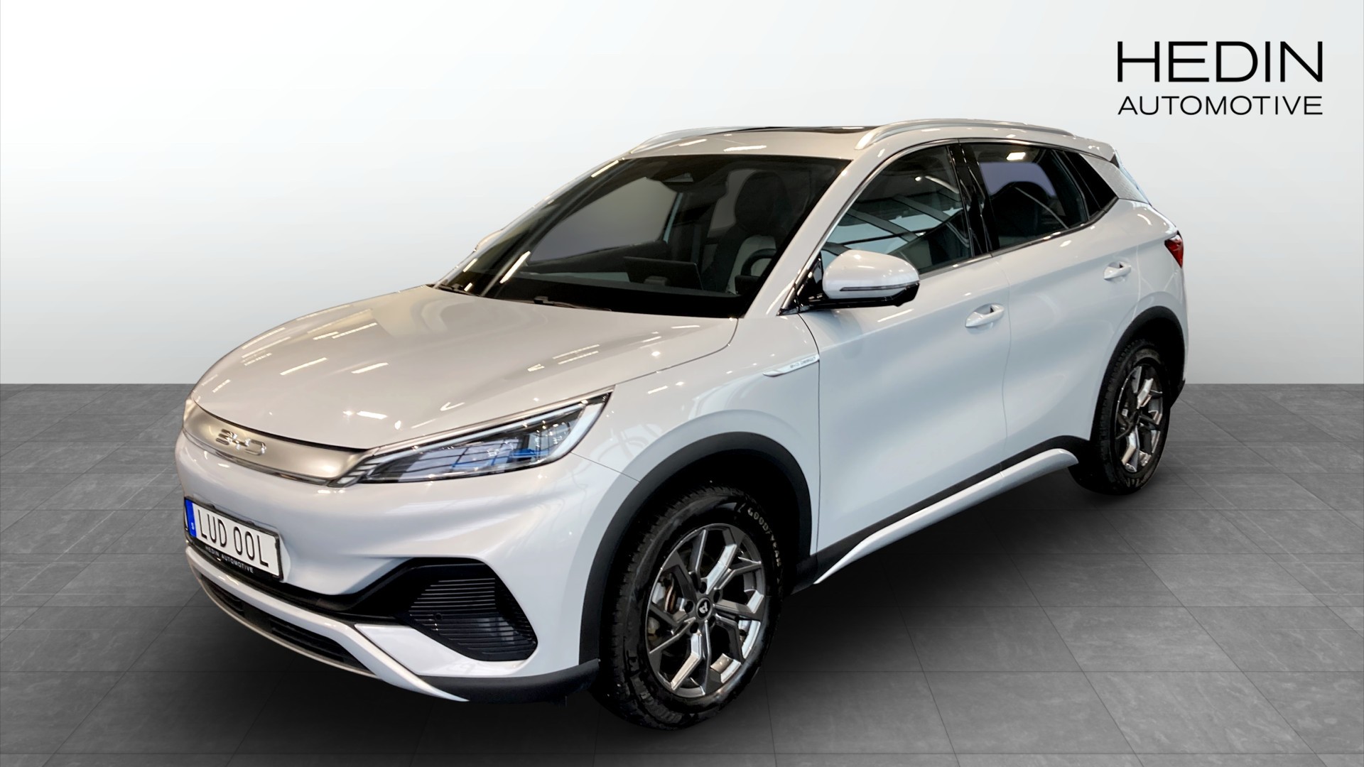 BYD ATTO 3 Design 60 kWh, 2022, i stilsäker Skiing White – en välutrustad, nästan ny el-SUV med endast ca 670 mil på mätaren.