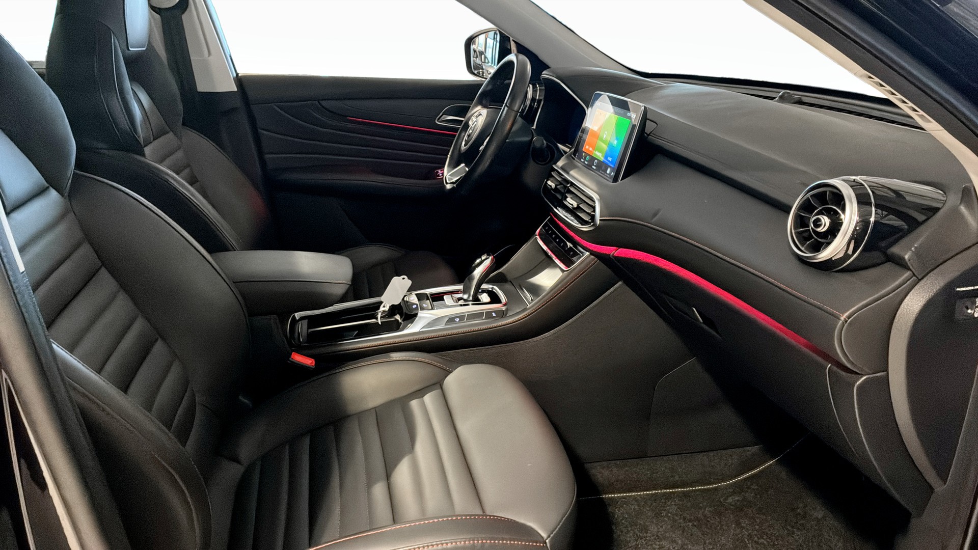 Invändigt möts du av en premiumkänsla med hel skinnklädsel, elstol för förare med svankstöd, stolsvärme fram och klimatanläggning. För komfort och säkerhet finns bland annat adaptiv farthållare, filbytesvarning, backkamera, parkeringssensorer bak, LED-strålkastare, regnsensor och multifunktionsratt. Bilen är utrustad med navigation, Bluetooth, USB, keyless, elinfällbara backspeglar, elhissar runt om samt elektrisk parkeringsbroms.