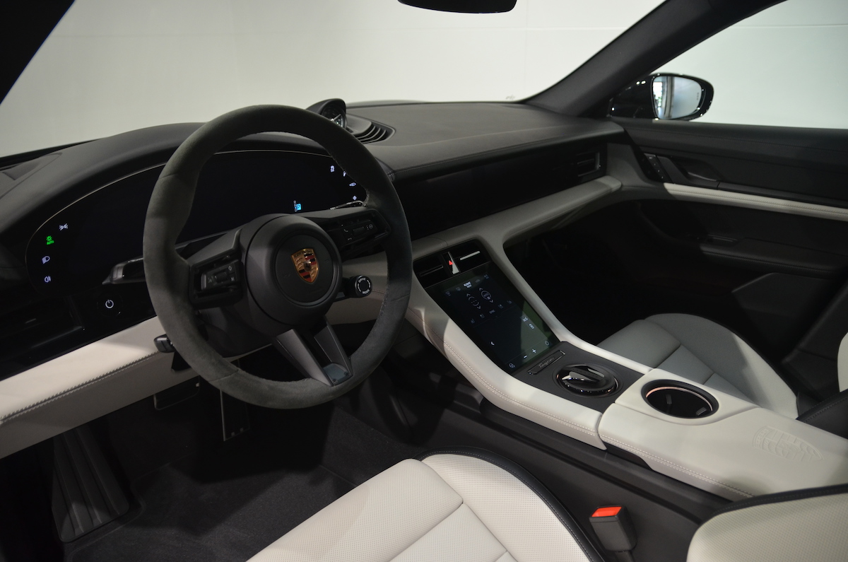Interiören bjuder på läderklädsel, adaptiva 18-vägs sportstolar med minne, sätesventilation fram, eluppvärmda stolar fram och bak samt eluppvärmd ratt i Race-Tex. Panoramatak i glas ger en ljus och rymlig kupé, medan BOSE® surroundljud, passagerardisplay, Head-Up Display och Porsche Electric Sport Sound höjer körupplevelsen ytterligare. Säteskonfiguration 4+1 ger flexibel plats för familj och vänner.